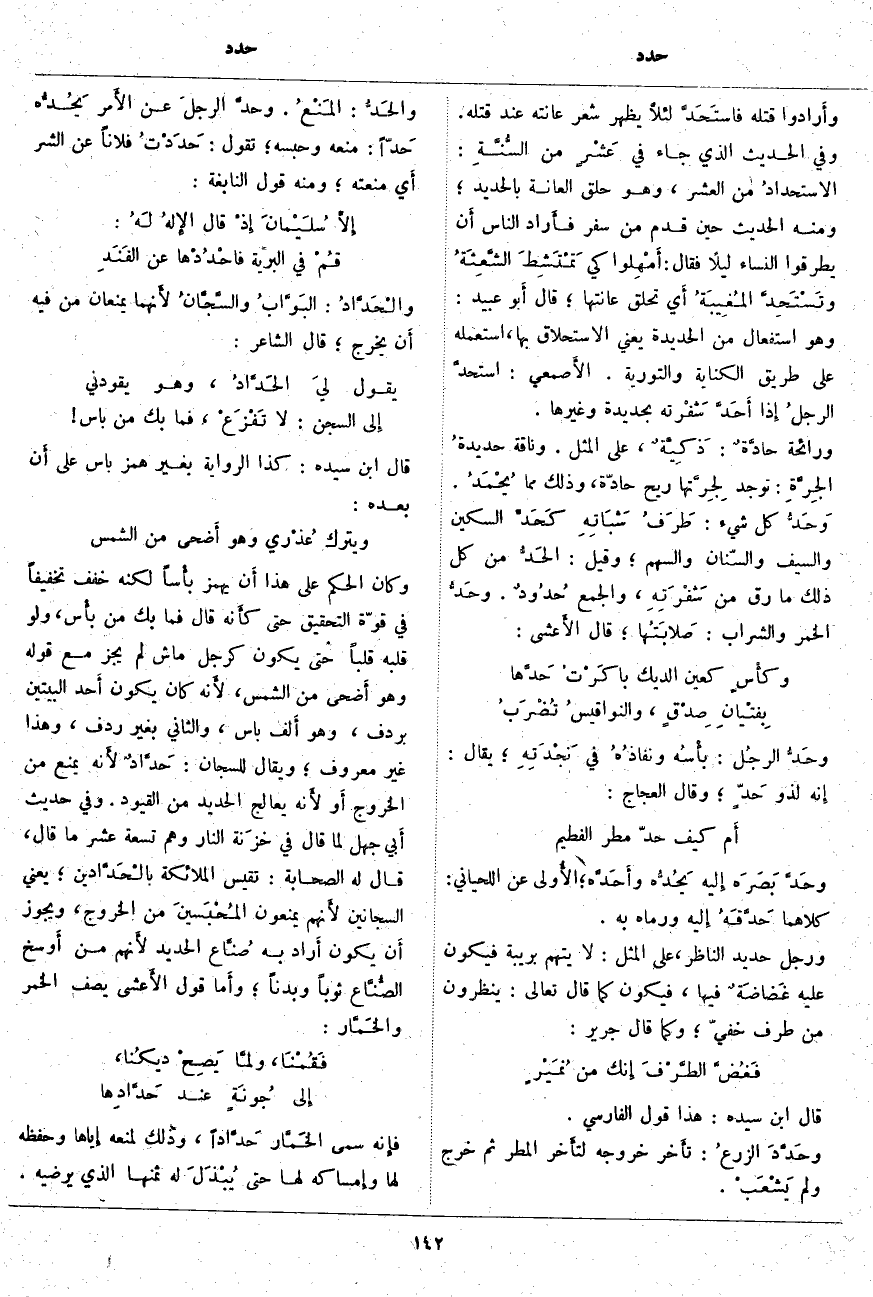 قَالَ ابْنُ سِيدَهْ: هَذَا قَوْلُ الْفَارِسِيِّ. وحَدَّدَ الزرعُ: تأَخر خُرُوجُهُ لتأَخر الْمَطَرِ ثُمَّ خَرَجَ وَلَمْ يَشْعَبْ. والحَدُّ: المَنْعُ. وحدَّ الرجلَ عَنِ الأَمر يَحُدُّه حَدّاً: مَنَعَهُ وَحَبَسَهُ؛ تَقُولُ: حَدَدْتُ فُلَانًا عَنِ الشَّرِّ أَي مَنَعْتُهُ؛ وَمِنْهُ قَوْلُ النَّابِغَةِ: