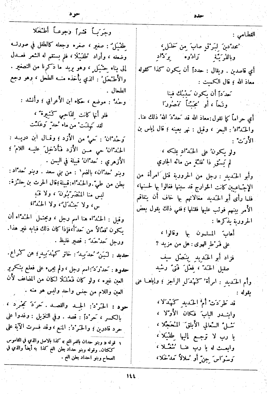 أَي حَرَامًا كَمَا تَقُولُ: مَعَاذَ اللَّه قَدْ حَدَّدَ اللَّه ذَلِكَ عَنَّا. والحَدَّادُ: الْبَحْرُ، وَقِيلَ: نَهْرٌ بِعَيْنِهِ، قَالَ إِياس بْنُ الأَرَتِّ: