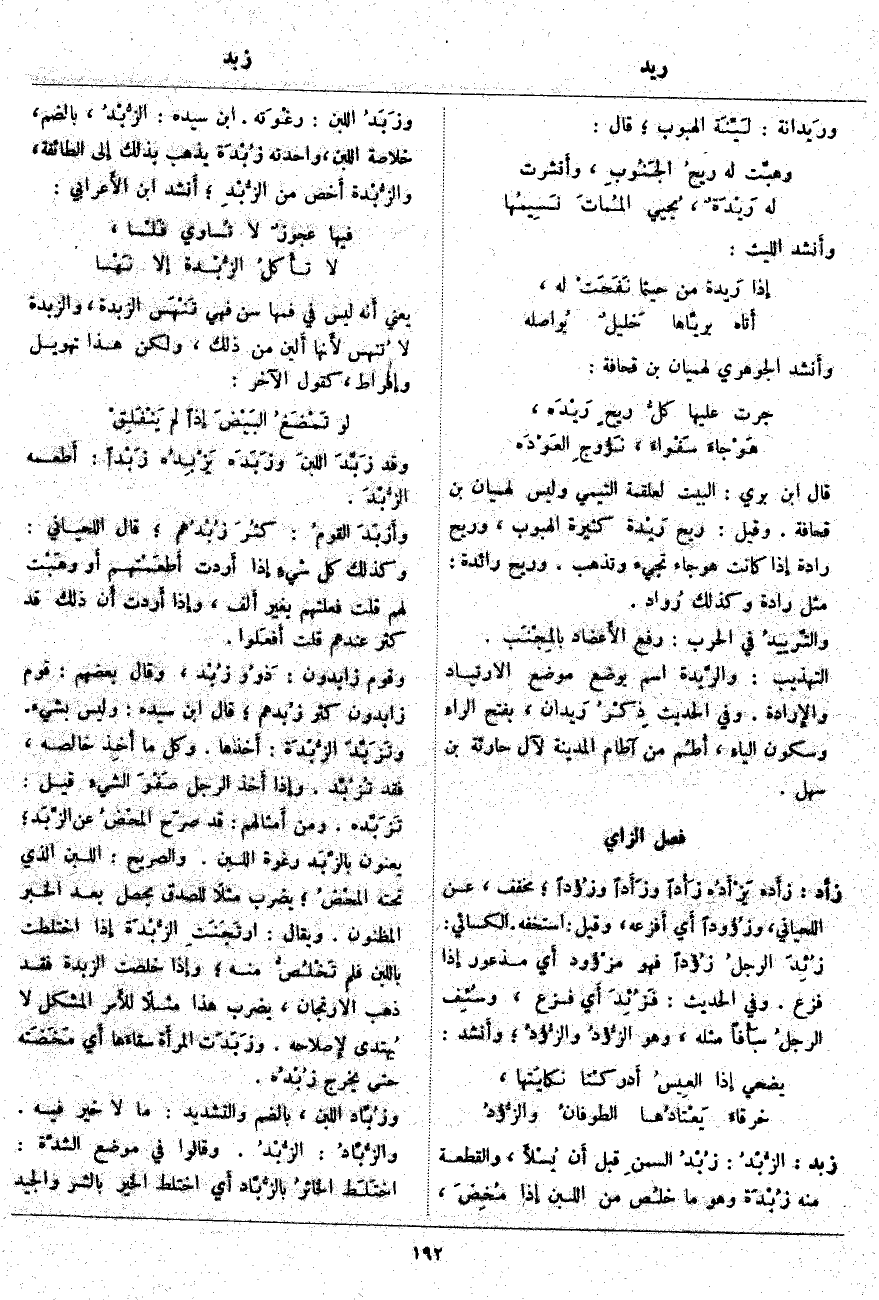 زبد: الزُّبْدُ: زُبْدُ السمنِ قَبْلَ أَن يُسْلأَ، وَالْقِطْعَةُ مِنْهُ زُبْدَة وَهُوَ مَا خلُص مِنَ اللَّبَنِ إِذا مُخِضَ، وزَبَدُ اللَّبَنِ: رغْوتَه. ابْنُ سِيدَهْ: الزُّبْدُ، بِالضَّمِّ، خُلَاصَةُ اللَّبَنِ، وَاحِدَتُهُ زُبْدَة يَذْهَبُ بِذَلِكَ إِلى الطَّائِفَةِ، والزُّبْدة أَخص مِنَ الزُّبْدِ؛ أَنشد ابْنُ الأَعرابي:
