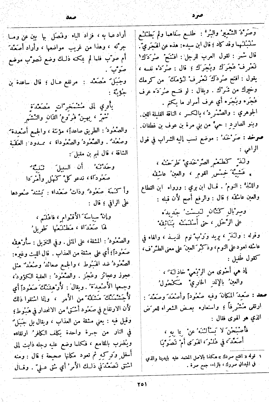 صعد: صَعِدَ المكانَ وَفِيهِ صُعُوداً وأَصْعَدَ وصَعَّدَ: ارْتَقَى مُشْرِفاً؛ وَاسْتَعَارَهُ بَعْضُ الشُّعَرَاءِ للعرَض الَّذِي هُوَ الْهَوَى فَقَالَ: