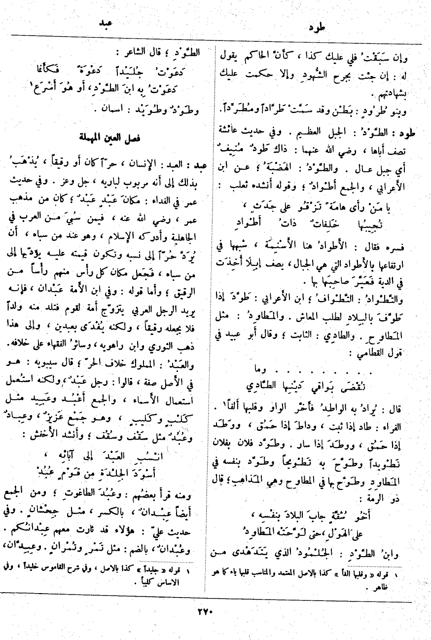 قَالَ: يُرادُ بِهِ الواطِدُ فأَخَّر الْوَاوَ وَقَلَبَهَا أَلفاً «2» الْفَرَّاءُ: طَادَ إِذا ثَبَتَ، وداطَ إِذا حَمُق، ووَطَد إِذا حَمُق، ووطَدَ إِذا سَارَ. وطَوَّد فُلَانٌ بِفُلَانٍ تَطْويداً وطَوَّحَ بِهِ تَطْوِيحاً وطَوَّد بِنَفْسِهِ فِي المَطاوِدِ وطَوَّح بِهَا فِي المطاوِح وَهِيَ المَذاهب؛ قَالَ ذُو الرُّمَّةِ:
