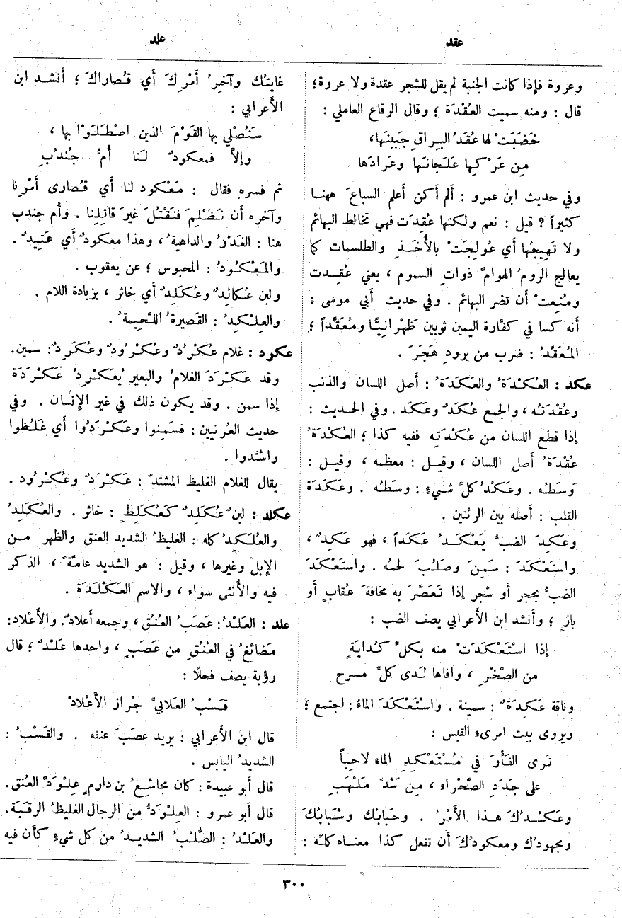 عكد: العُكْدَةُ والعَكَدَةُ: أَصل اللِّسَانِ وَالذَّنَبِ وعُقْدَتُه، وَالْجَمْعُ عُكَدٌ وعَكَد. وَفِي الْحَدِيثِ: