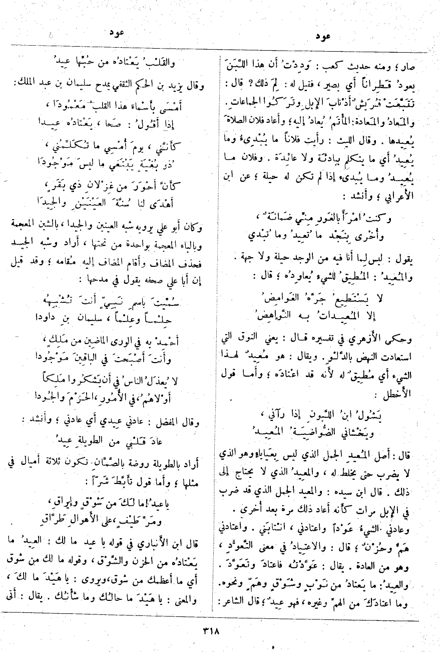 قَالَ ابْنُ الأَنباري فِي قَوْلِهِ يَا عِيدُ مَا لَكَ: العِيدُ مَا يَعْتادُه مِنَ الْحُزْنِ والشَّوْق، وَقَوْلُهُ مَا لَكَ مِنْ شَوْقٍ أَي مَا أَعظمك مِنْ شَوْقٍ، وَيُرْوَى: يَا هَيْدَ مَا لكَ، وَالْمَعْنَى: يَا هَيْدَ مَا حالُك وَمَا شأْنُك. يُقَالُ: أَتى