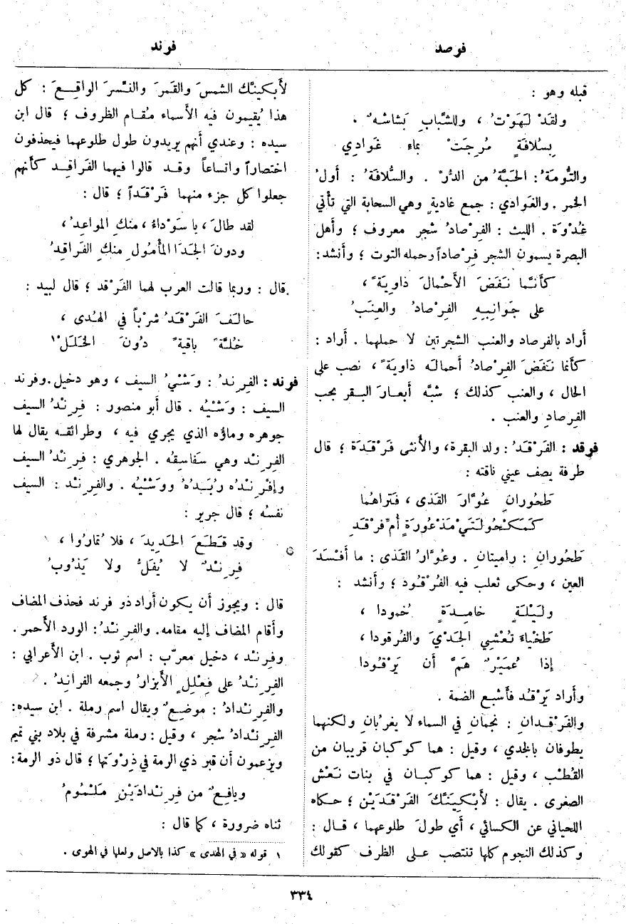 والتُّومَةُ: الحَبَّةُ مِنَ الدُّرِّ. والسُّلافَةُ: أَولُ الْخَمْرِ. والغَوادي: جَمْعُ غاديةٍ وهي السَّحَابَةُ الَّتِي تأْتي غُدْوَة. اللَّيْثُ: الفِرْصادُ شَجَرٌ مَعْرُوفٌ؛ وأَهل الْبَصْرَةِ يُسَمُّونَ الشَّجَرَ فِرْصاداً وَحَمْلُهُ التُّوتُ؛ وأَنشد: