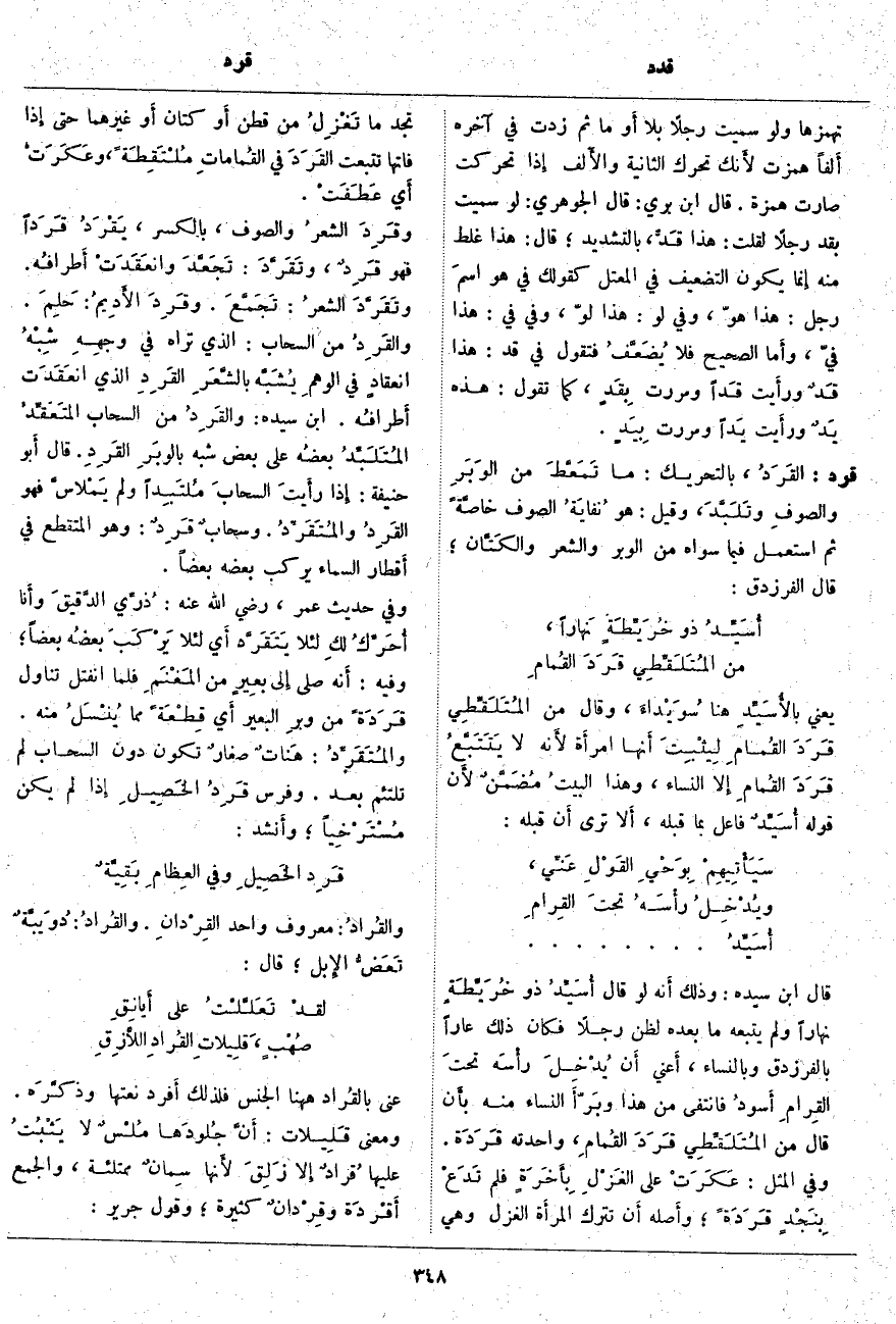 قرد: القَرَدُ، بِالتَّحْرِيكَ: مَا تَمَعَّطَ مِنَ الوَبَرِ والصوفِ وتَلَبَّدَ، وَقِيلَ: هُوَ نُفايَةُ الصُّوفِ خاصَّةً ثُمَّ اسْتُعْمِلَ فِيمَا سِوَاهُ مِنَ الْوَبَرِ وَالشَّعْرِ والكَتَّان، قَالَ الْفَرَزْدَقُ: