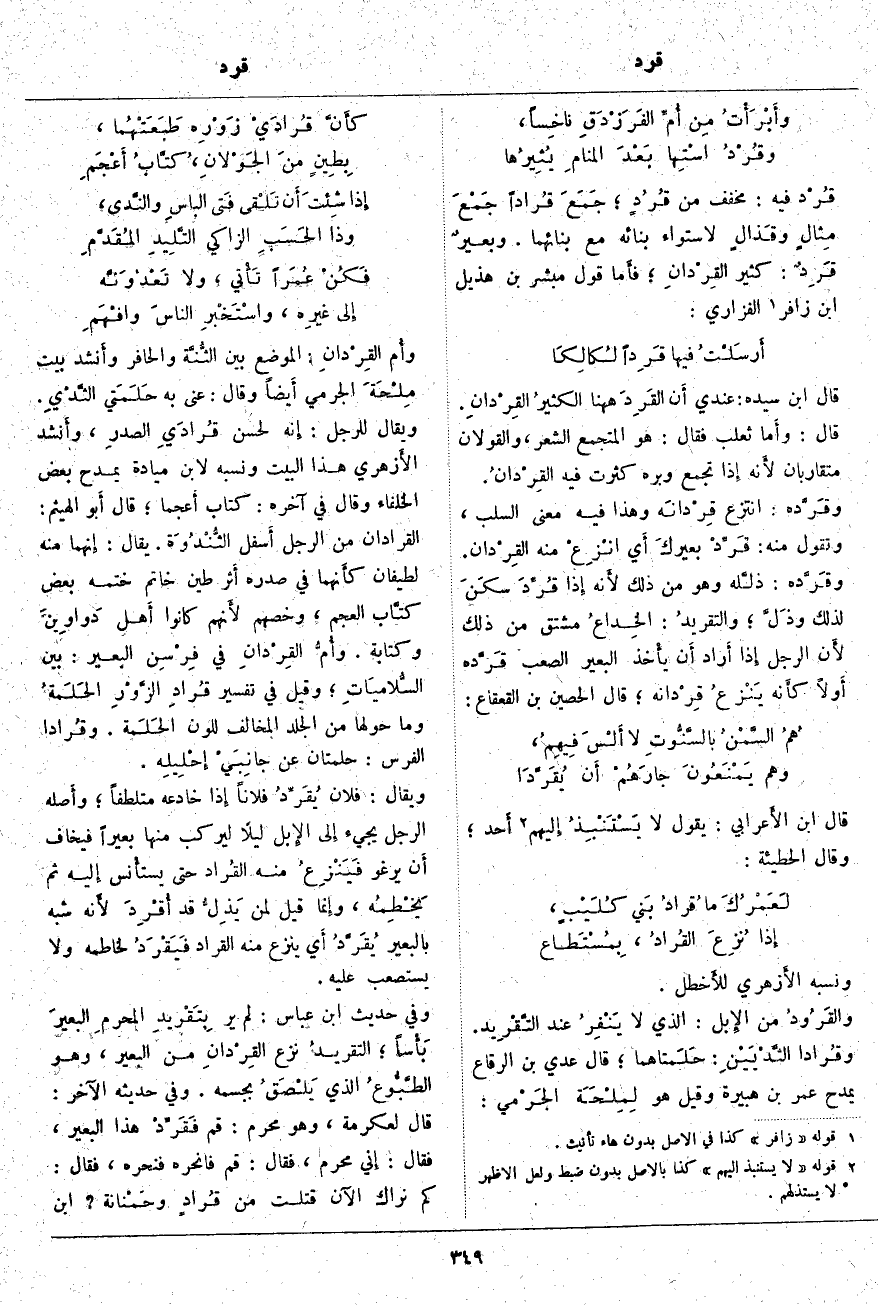 قُرْد فِيهِ: مُخَفَّفٌ مِنْ قُرُدٍ؛ جَمَعَ قُراداً جَمْعَ مِثالٍ وقَذالٍ لِاسْتَوَاءِ بِنَائِهِ مَعَ بِنَائِهِمَا. وبعيرٌ قَرِدٌ: كَثِيرُ القِرْدانِ؛ فأَما قَوْلُ مُبَشِّرُ بْنُ هُذَيْلِ بْنِ زَافِرٍ «4» الْفَزَارِيِّ: