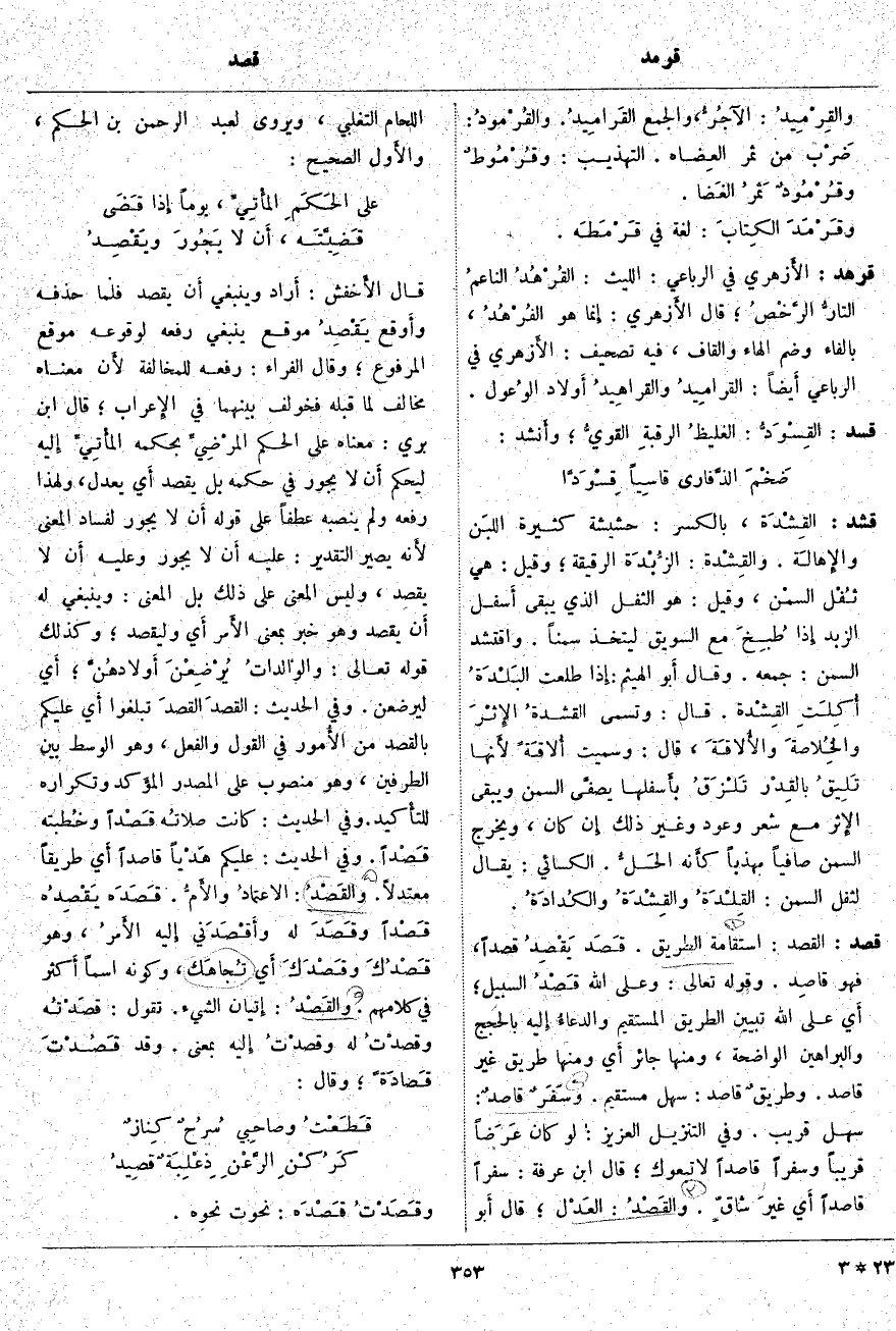 قصد: الْقَصْدُ: اسْتِقَامَةُ الطَّرِيقِ. قَصَد يَقْصِدُ قَصْدًا، فَهُوَ قاصِد. وَقَوْلُهُ تَعَالَى: وَعَلَى اللَّهِ قَصْدُ السَّبِيلِ