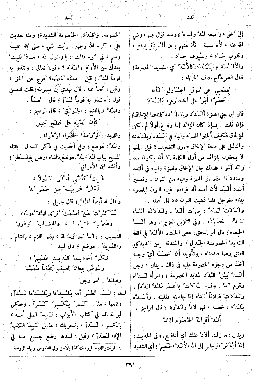 ؛ أَي الشَّدِيدُ الْخُصُومَةِ. واللَّدَد: الخُصومة الشَّدِيدَةُ؛ وَمِنْهُ حَدِيثِ