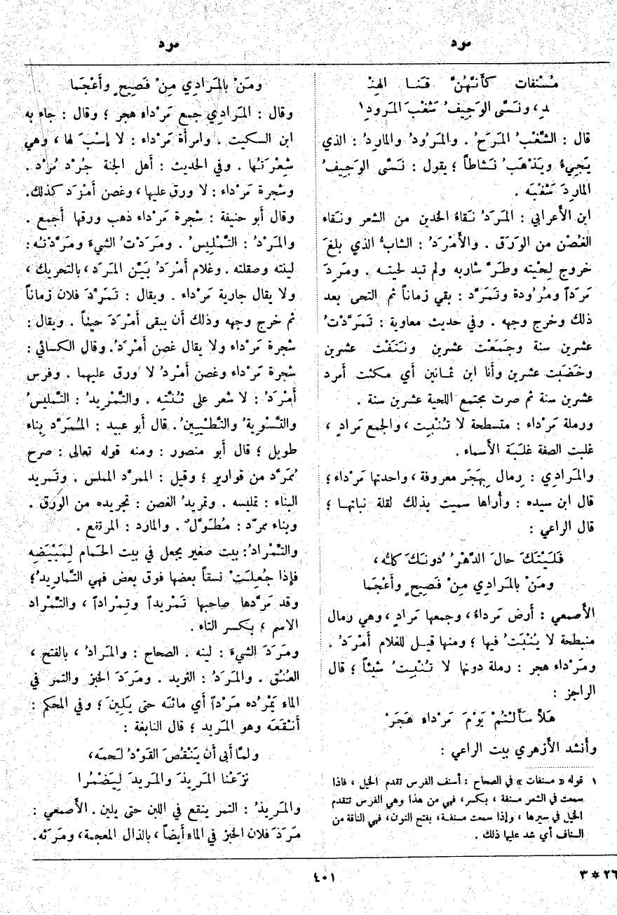 وَشَجَرَةٌ مَرْداء: لَا وَرَقَ عَلَيْهَا، وَغُصْنٌ أَمْرَد كَذَلِكَ. وَقَالَ أَبو حَنِيفَةَ: شَجَرَةٌ مَرْداء ذَهَبَ وَرَقُهَا أَجمع. والمَرْدُ: التَّمْلِيسُ. ومَرَدْتُ الشيءَ ومَرَّدْتُه: لَيَّنْتَهُ وَصَقَلْتَهُ. وَغُلَامٌ أَمْرَدُ بَيِّن المَرَد، بِالتَّحْرِيكِ، وَلَا يُقَالُ جَارِيَةٌ مَرْداء. وَيُقَالُ: تَمَرَّدَ فُلَانٌ زَمَانًا ثُمَّ خَرَجَ وَجْهُهُ وَذَلِكَ أَن يَبْقَى أَمْرَدَ حِينًا. وَيُقَالُ: شَجَرَةٌ مَرْداء وَلَا يُقَالُ غُصْنٌ أَمْرَدُ. وَقَالَ الْكِسَائِيُّ: شَجَرَةٌ مَرْداء وَغُصْنٌ أَمْردُ لَا وَرَقَ عَلَيْهِمَا. وَفَرَسٌ أَمْرَدُ: لَا شَعْرَ عَلَى ثُنَّتِه. والتَّمْرِيدُ: التَّمليسُ والتَّسْوِيةُ والتَّطْيِينُ. قَالَ أَبو عُبَيْدٍ: المُمَرَّد بِناء طَوِيلٌ؛ قَالَ أَبو مَنْصُورٍ: وَمِنْهُ قوله تعالى: رْحٌ مُمَرَّدٌ مِنْ قَوارِيرَ