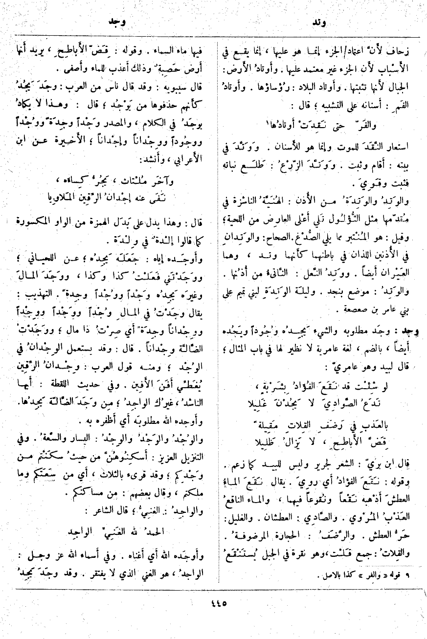 وجد: وجَد مَطْلُوبَهُ وَالشَّيْءُ يَجِدُه وُجُوداً ويَجُده أَيضاً، بِالضَّمِّ، لُغَةٌ عَامِرِيَّةٌ لَا نَظِيرَ لَهَا فِي بَابِ الْمِثَالِ؛ قَالَ لَبِيدٌ وَهُوَ عَامِرِيٌّ: