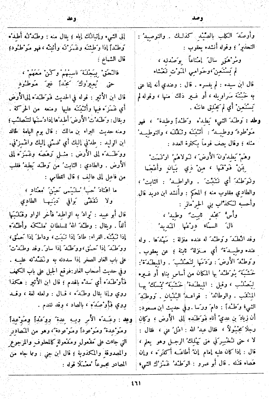 وعد: وعَدَه الأَمر وَبِهِ عِدةً ووَعْداً ومَوْعِداً ومَوْعِدةً ومَوْعوداً ومَوْعودةً، وَهُوَ مِنَ المَصادِرِ الَّتِي جاءَت عَلَى مَفْعولٍ ومَفْعولةٍ كالمحلوفِ والمرجوعِ والمصدوقةِ وَالْمَكْذُوبَةِ؛ قَالَ ابْنُ جِنِّي: وَمِمَّا جَاءَ مِنَ الْمَصَادِرِ مَجْمُوعًا مُعْمَلًا قَوْلَهُ: