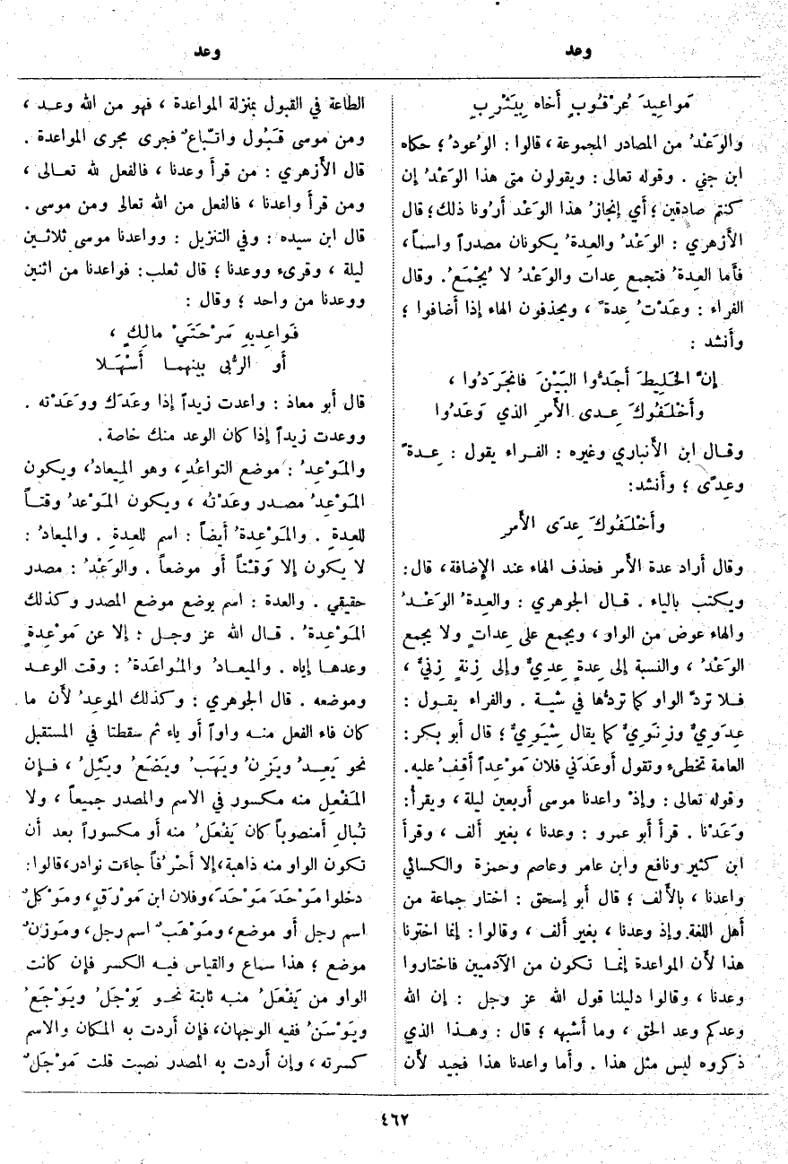 والوَعْدُ مِنَ الْمَصَادِرِ الْمَجْمُوعَةِ، قَالُوا: الوُعودُ؛ حَكَاهُ ابْنُ جني. وقوله تَعَالَى: وَيَقُولُونَ مَتى هذَا الْوَعْدُ إِنْ كُنْتُمْ صادِقِينَ*