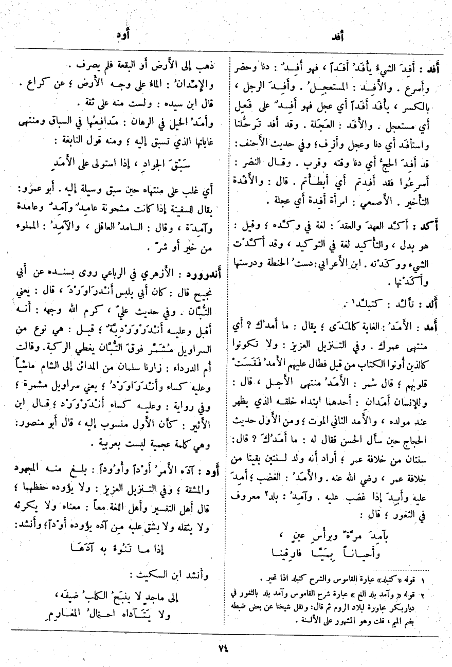 أمد: الأَمَدُ: الْغَايَةُ كالمَدَى؛ يُقَالُ: مَا أَمدُك؟ أَي مُنْتَهَى عُمُرِكَ. وَفِي التَّنْزِيلِ الْعَزِيزِ: وَلا يَكُونُوا كَالَّذِينَ أُوتُوا الْكِتابَ مِنْ قَبْلُ فَطالَ عَلَيْهِمُ الْأَمَدُ فَقَسَتْ قُلُوبُهُمْ
