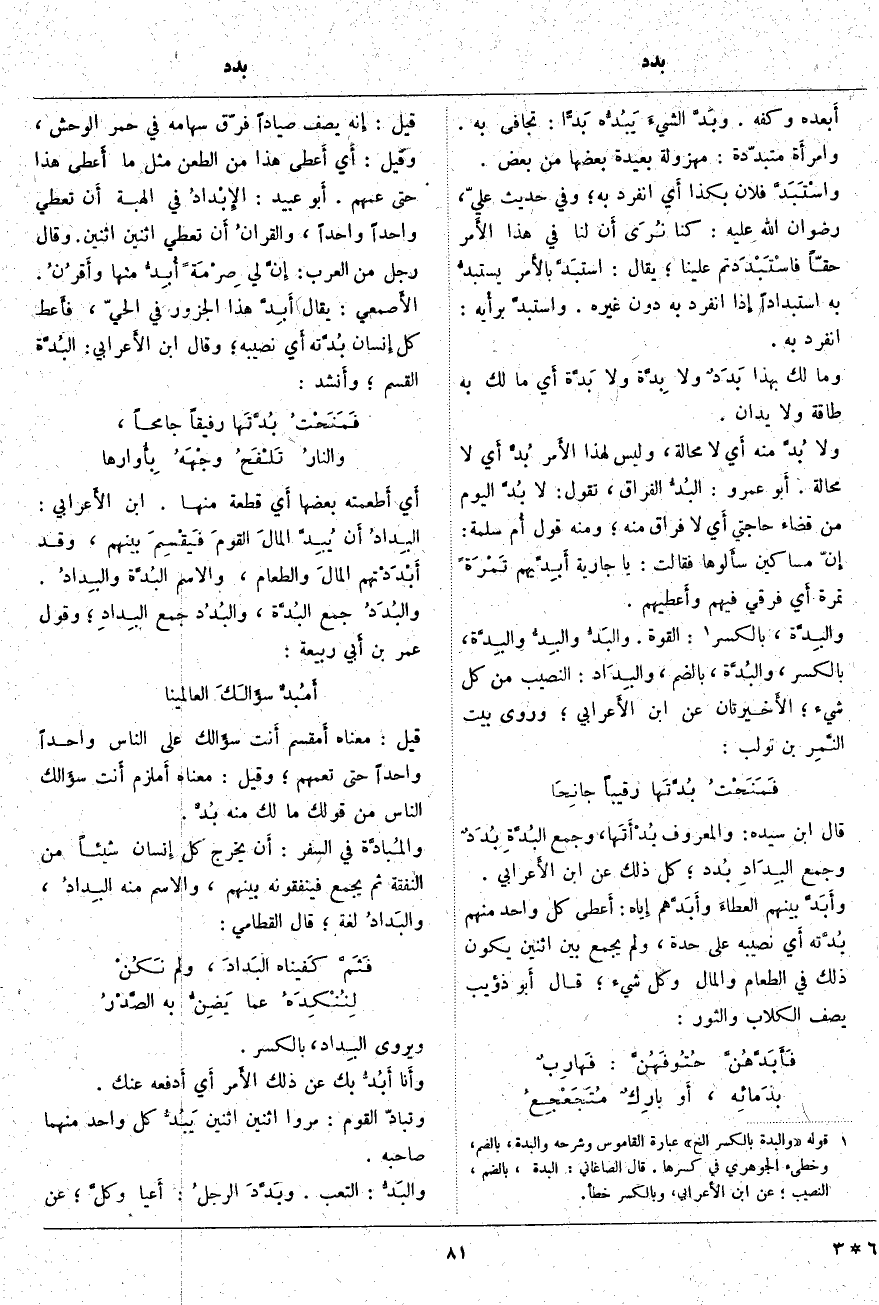 (2). قوله [والبدة بالكسر إلخ] عبارة القاموس وشرحه والبدة، بالضم، وخطئ الجوهري في كسرها. قال الصاغاني: البدة، بالضم، النصيب؛ عن ابن الأَعرابي، وبالكسر خطأ