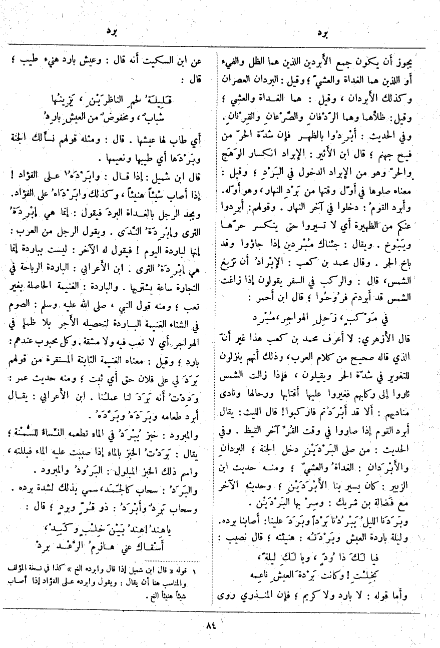 (3). قوله [قَالَ ابْنُ شُمَيْلٍ إِذا قال وا برده إلخ] كذا في نسخة المؤلف والمناسب هنا أن يقال: ويقول وا برده عَلَى الْفُؤَادِ إِذَا أَصَابَ شيئاً هنيئاً إلخ.