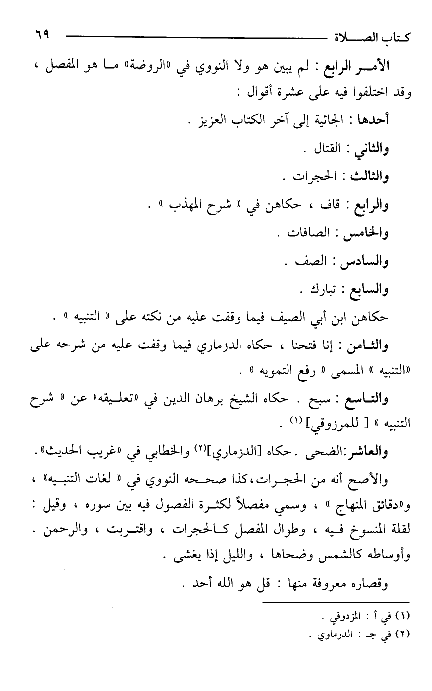 الأمر الرابع: لم يبين هو ولا النووي في "الروضة" ما هو المفصل، وقد اختلفوا فيه على عشرة أقوال: