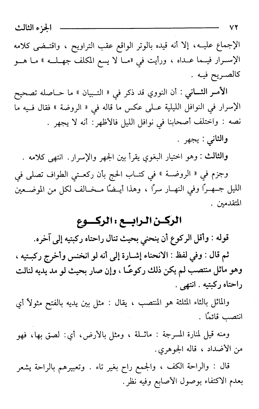 الأمر الثانى: أن النووي قد ذكر في "التبيان" ما حاصله تصحيح الإسرار في النوافل الليلية على عكس ما قاله في "الروضة" فقال فيه ما نصه: واختلف أصحابنا في نوافل الليل فالأظهر: أنه لا يجهر.