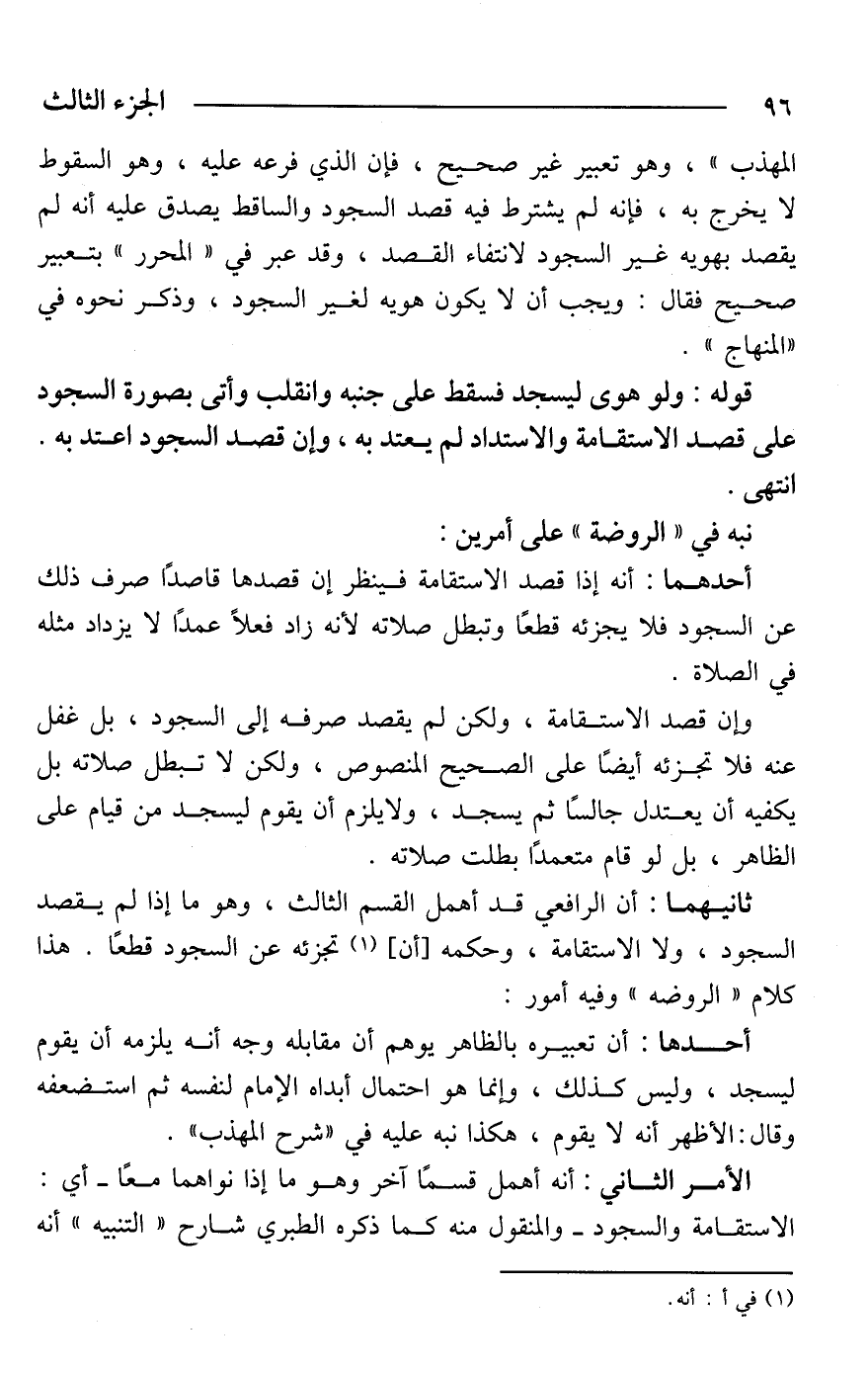 ثانيهما: أن الرافعي قد أهمل القسم الثالث، وهو ما إذا لم يقصد السجود، ولا الاستقامة، وحكمه [أن] (¬1) تجزئه عن السجود قطعًا. هذا كلام "الروضة" وفيه أمور: