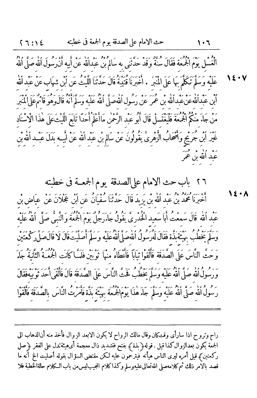 [1408] صل رَكْعَتَيْنِ قيل أمره ليرى النَّاس هيأته فيترحمون عَلَيْهِ لَكِن مُقْتَضى السُّؤَال بقوله أصليت الخ أَنه مَا قصد بِالْأَمر ذَلِك ثمَّ كَلَامه صلى الله تَعَالَى عَلَيْهِ وَسلم وَكَذَا كَلَام الْمُجيب لَيْسَ من بَاب الْكَلَام حَالَة الْخطْبَة فَلَا يَشْمَلهُ النَّهْي لِأَن الامام إِذا شرع فِي الْكَلَام فَمَا بقيت الْخطْبَة تِلْكَ السَّاعَة وَقَالَ خُذ ثَوْبك فِيهِ أَن الْمُحْتَاج يقدم نَفسه وَأَن الْإِنْسَان يبْدَأ بِنَفسِهِ قَوْله