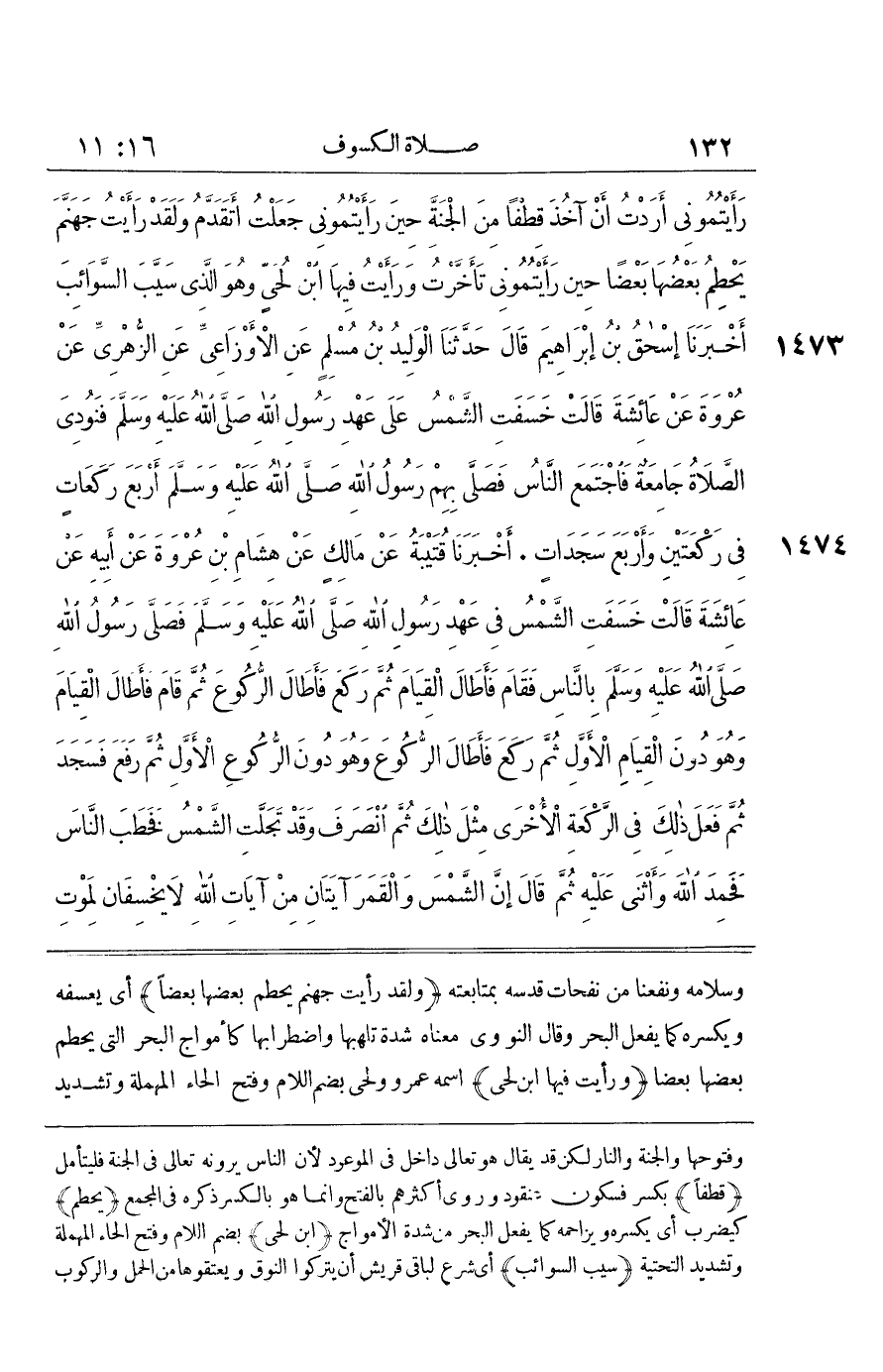 وَسَلَامُهُ وَنَفَعَنَا مِنْ نَفَحَاتِ قُدْسِهِ بِمُتَابَعَتِهِ وَلَقَدْ رَأَيْتُ جَهَنَّمَ يَحْطِمُ بَعْضُهَا بَعْضًا أَيْ يَعْسِفُهُ وَيَكْسِرُهُ كَمَا يَفْعَلُ الْبَحْرُ وَقَالَ النَّوَوِيُّ مَعْنَاهُ شِدَّةُ تَلَهُّبِهَا وَاضْطِرَابِهَا كَأَمْوَاجِ الْبَحْرِ الَّتِي يَحْطِمُ بَعْضهَا بَعْضًا وَرَأَيْت فِيهَا بن لُحَيٍّ اسْمُهُ عَمْرٌو وَلُحَيٌّ بِضَمِّ اللَّامِ وَفَتْحِ الْحَاءِ الْمُهْمَلَةِ وَتَشْدِيدِ