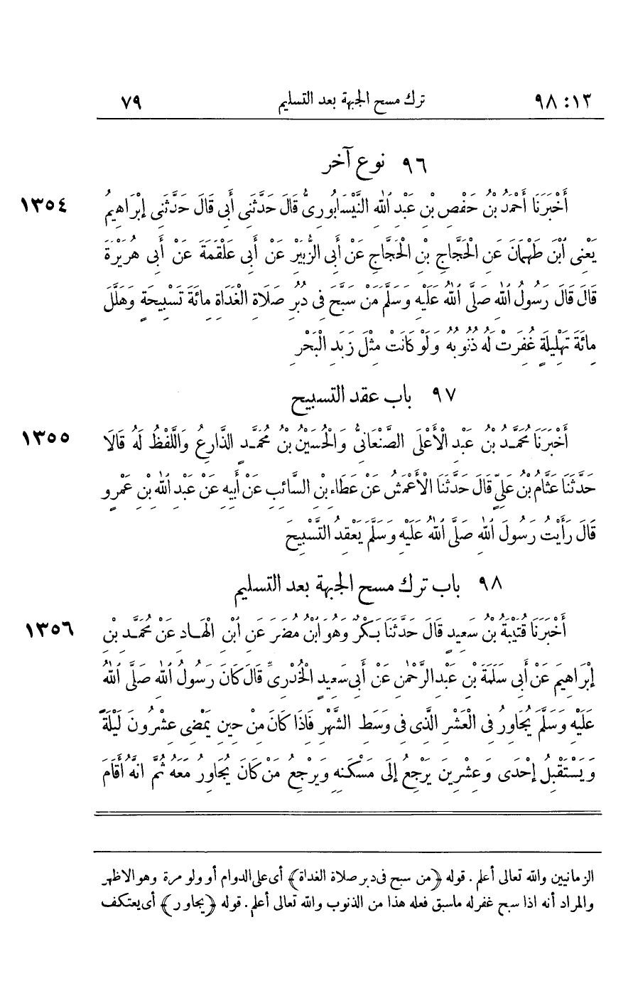 [1354] من سبح فِي دبر صَلَاة الْغَدَاة أَي على الدَّوَام أَو وَلَو مرّة وَهُوَ الْأَظْهر وَالْمرَاد أَنه إِذا سبح غفر لَهُ مَا سبق فعله هَذَا من الذُّنُوب وَالله تَعَالَى أعلم قَوْله يجاور أَي يعْتَكف أَي قبل أَن يلْتَزم الْعشْر الاواخر