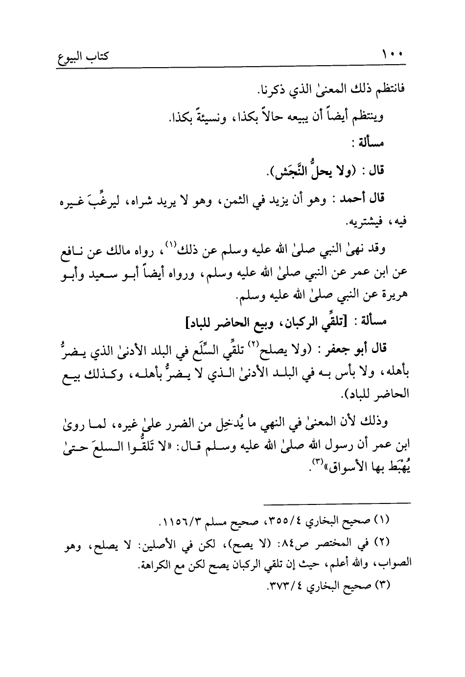 قال أبو جعفر: (ولا يصلح تلقي السلع في البلد الأدنى الذي يضر بأهله، ولا بأس به في البلد الأدنى الذي لا يضر بأهله، وكذلك بيع الحاضر للباد).