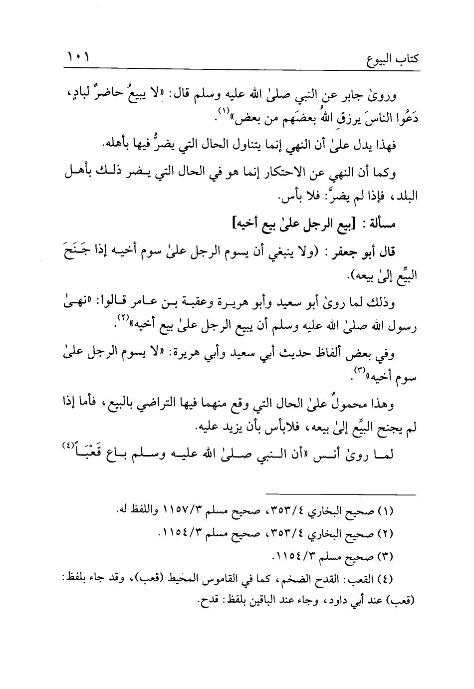 قال أبو جعفر: (ولا ينبغي أن يسوم الرجل على يوم أخيه إذا جنح البيع إلى بيعه).
