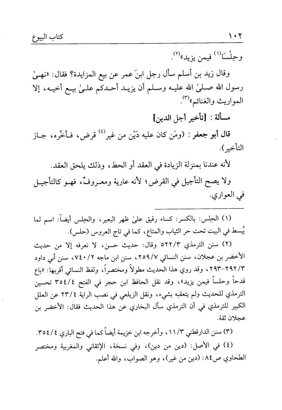 قال أبو جعفر: (ومن كان عليه دين من غير قرض، فأخره، جاز التأخير).