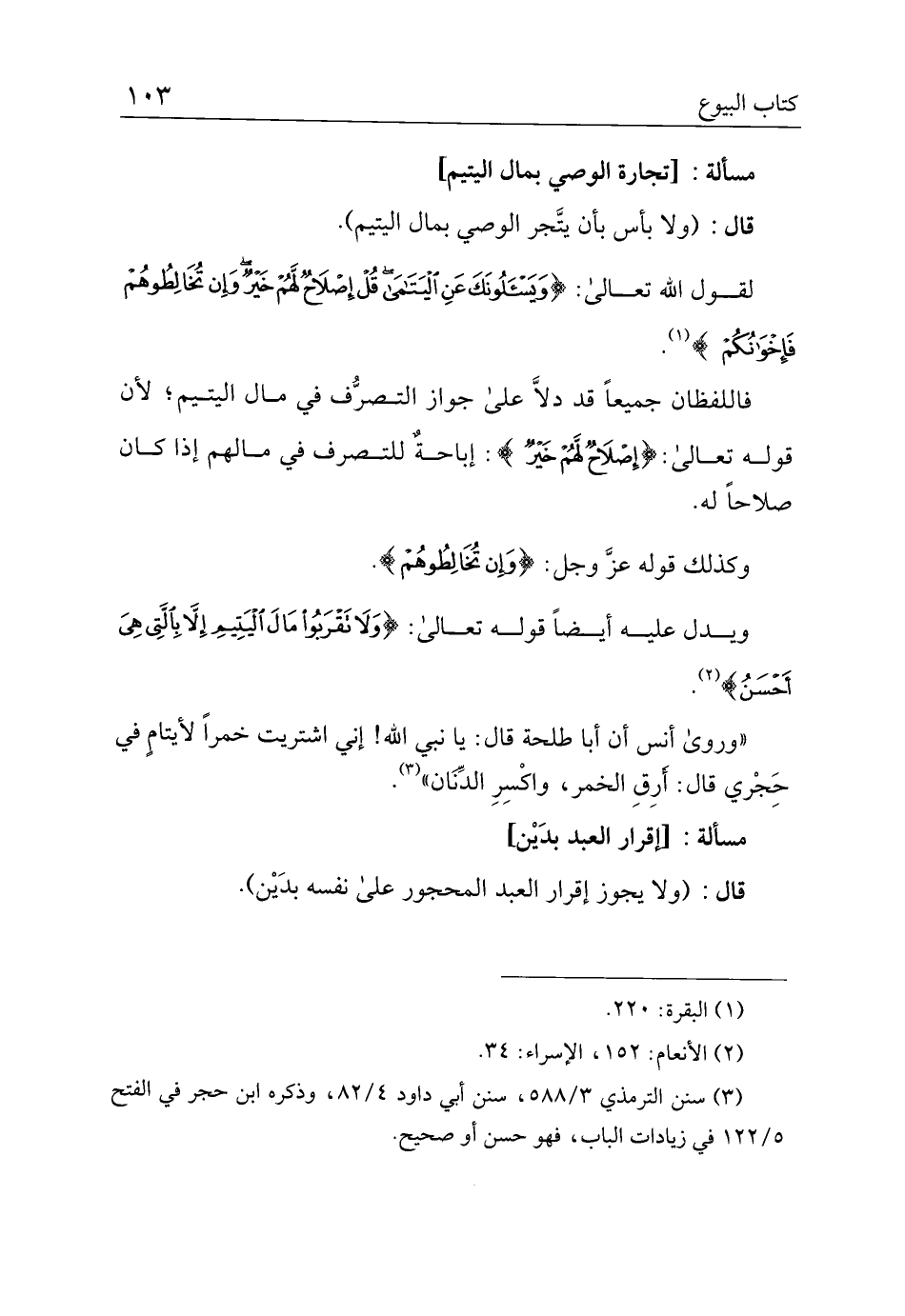 "وروى أنس أن أبا طلحة قال: يا نبي الله! إني اشتريت خمرا لأيتام في حجري قال: أرق الخمر، واكسر الدنان".