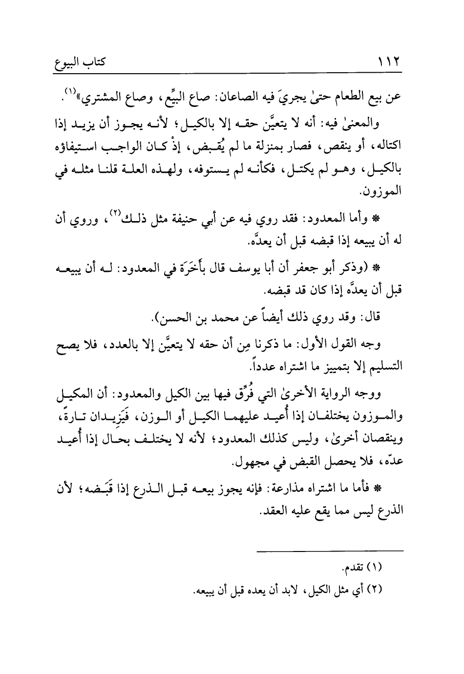 *وأما المعدود: فقد روي فيه عن أبي حنيفة مثل ذلك، وروي أن له أن يبيعه إذا قبضه قبل أن يعده.
