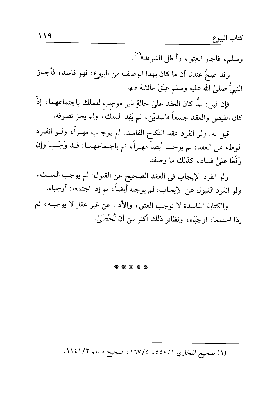 وقد صح عندنا أم ما كان بهذا الوصف من البيوع: فهو فاسد، فأجاز النبي صلى الله عليه وسلم عتق عائشة فيها.