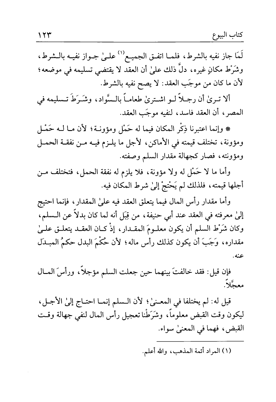 قيل له: لم يختلفا في المعني؛ لأن السلم إنما احتاج إلى الأجل، ليكون وقت القبض معلوما، وشرطنا تعجيل رأس المال لنفي جهالة وقت القبض، فهما في المعنى سواء.