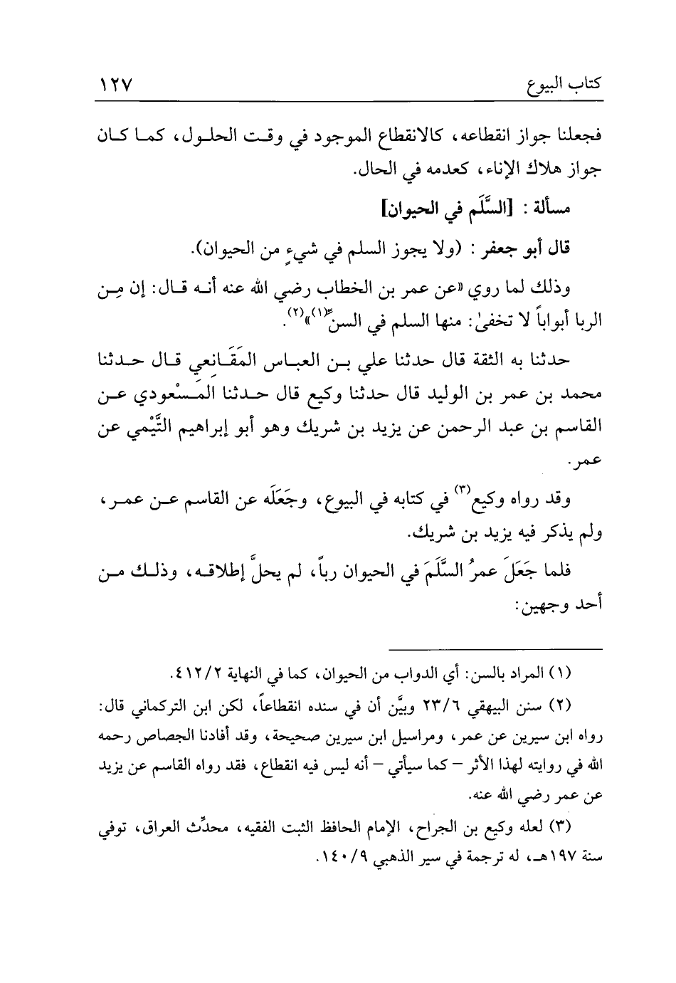 فلما جعل عمر السلم في الحيوان ربا، ـ لم يحل إطلاقه، وذلك من احد وجهين: