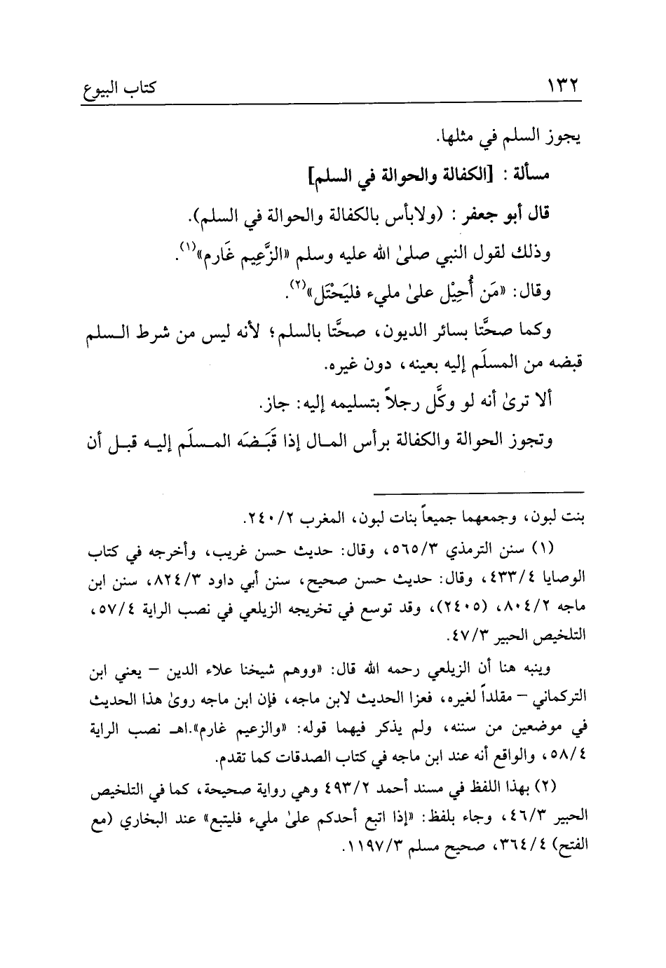 قال أبو جعفر: (ولا بأس بالكفالة والحوالة في السلم).