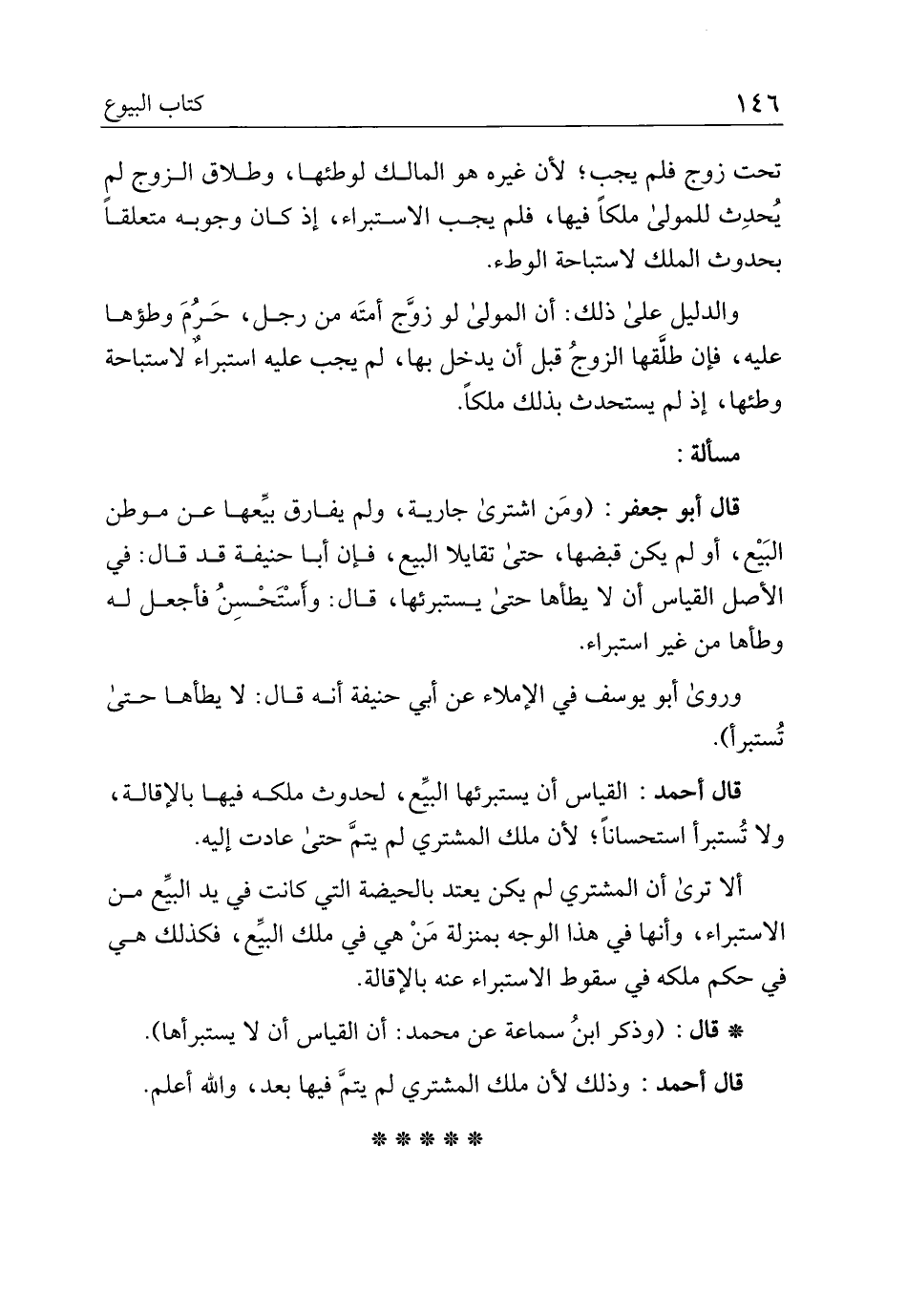 وروى أبو يوسف في الإملاء عن أبي حنيفة أنه قال: لا يطأها حتى تستبرأ).