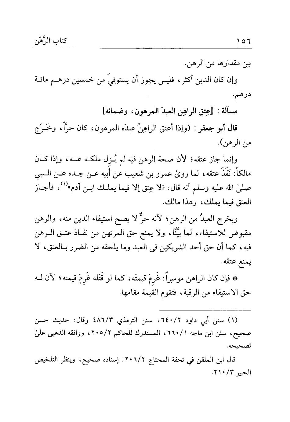 مسألة: [عتق الراهن العبد المرهون، وضمانه]