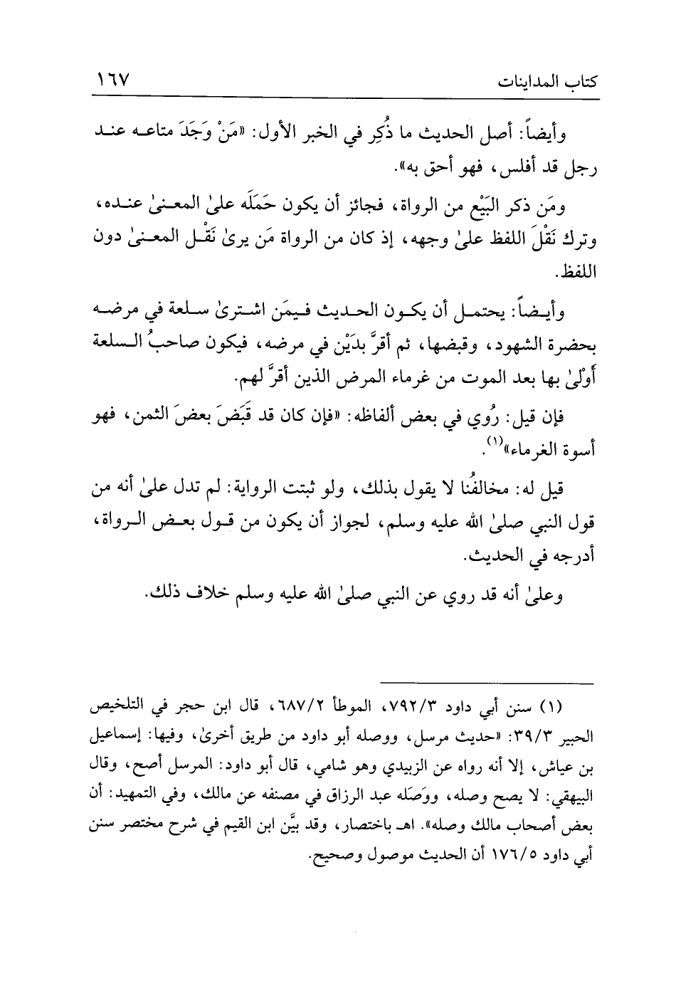 ومن ذكر البيع من الرواة، فجائز أن يكون حمله على المعني عنده، وترك نقل اللفظ على وجهه، إذا كان من الرواة من يرى نقل المعنى دون اللفظ.
