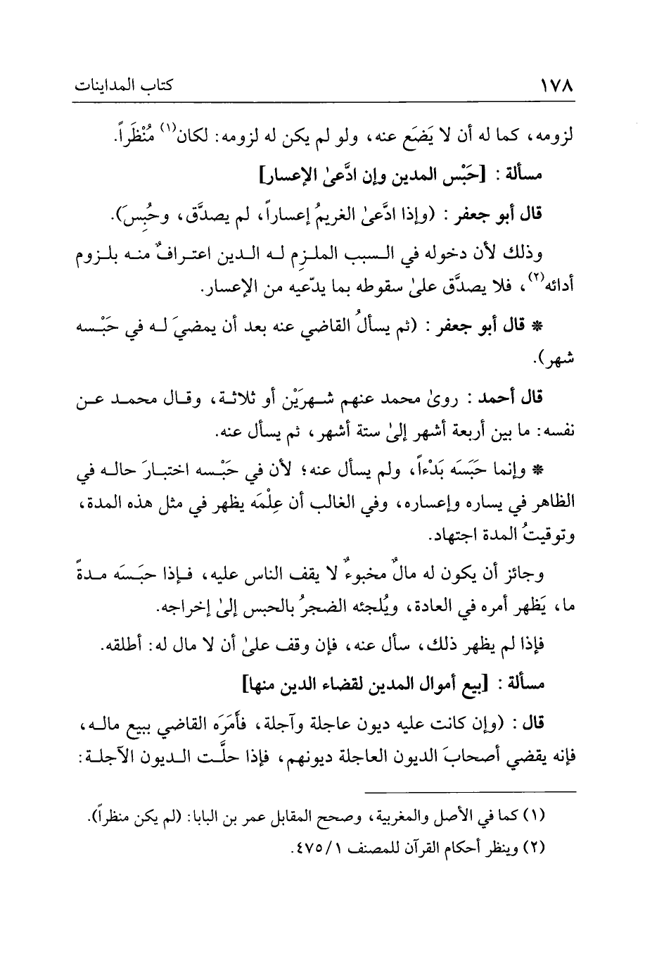*لا أبو جعفر: (ثم يسأل القاضي عنه بعد أن يمضي له في حبسه شهر).