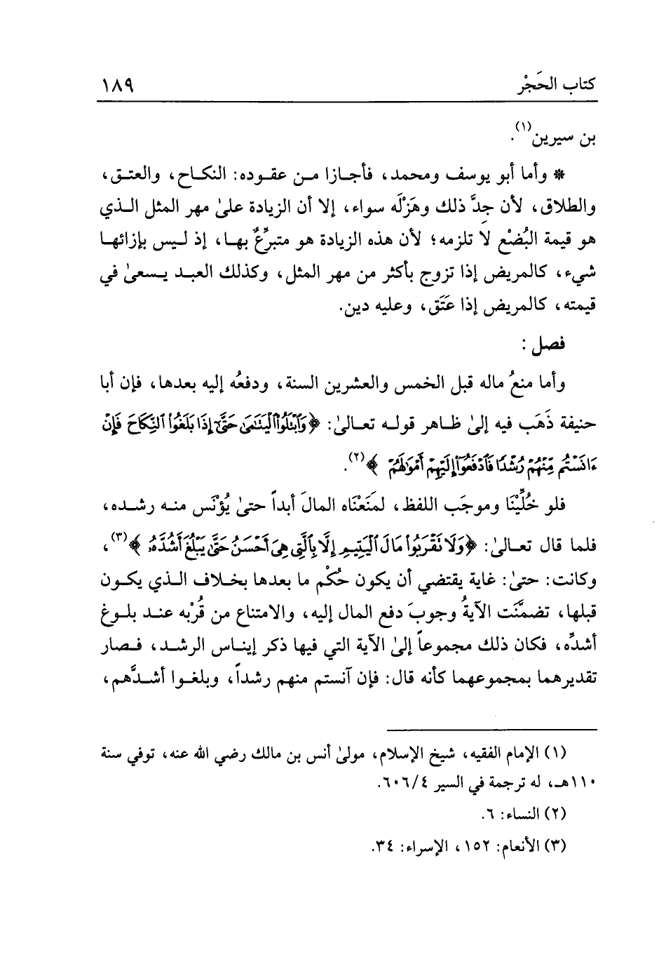 وأما منع ماله قبل الخمس والعشرين سنة، ودفعه إليه بعدها، فإن أبا حنيفة ذهب فيه إلى ظاهر قوله تعالى: {وابتلوا اليتامى حتى إذا بلغوا النكاح فإن أنستم منهم رشدا فادفعوا إليهم أموالهم}.