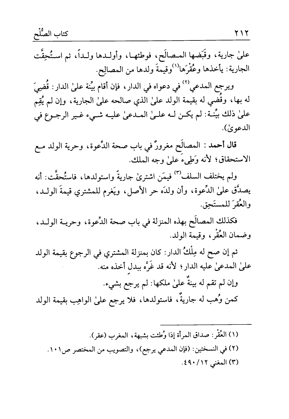 قال أحمد: المصالح مغرور في باب صحة الدعوة، وحرية الولد مع الاستحقاق؛ لأنه وطئ على وجه الملك.