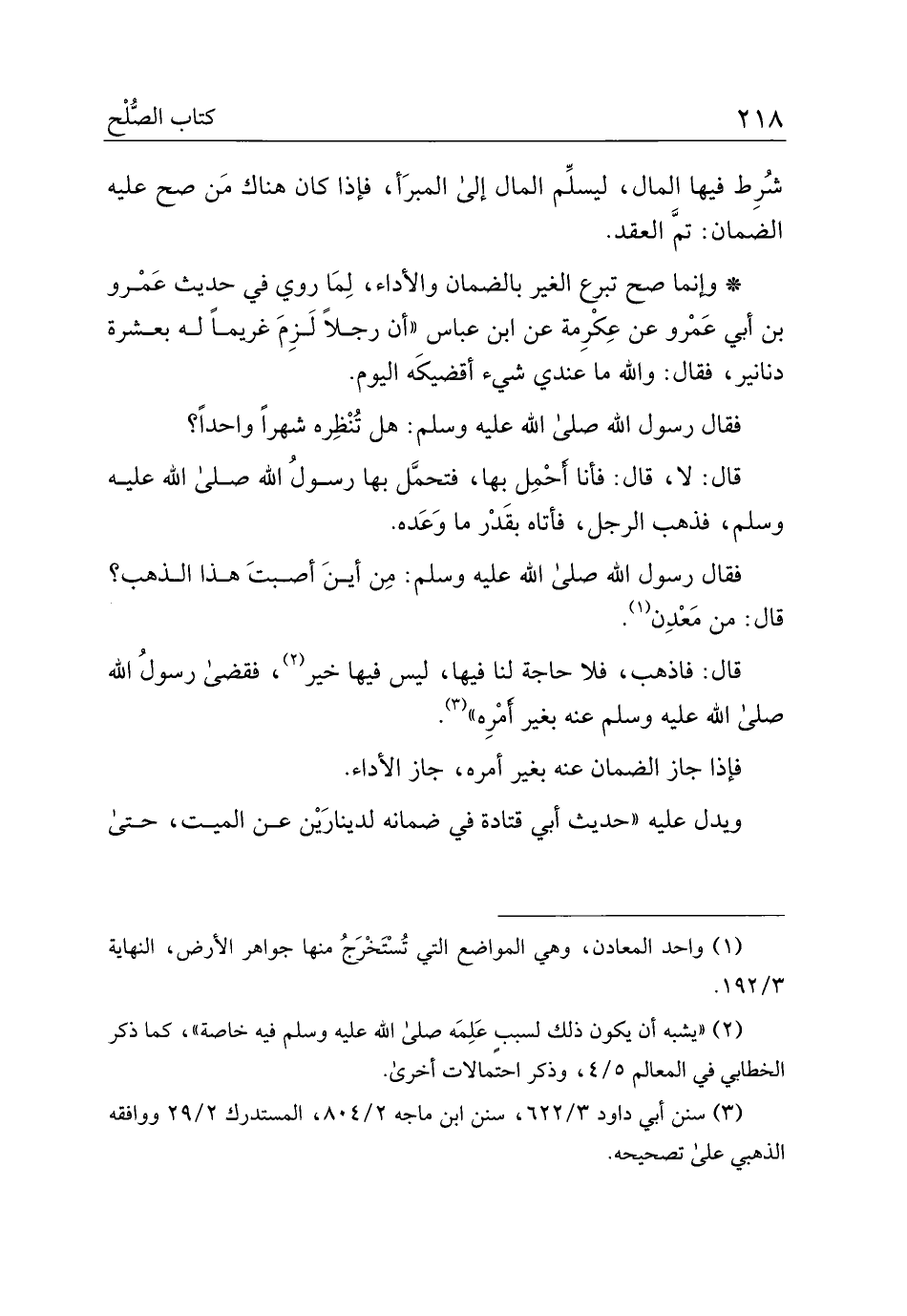 ويدل عليه "حديث أبي قتادة في ضمانه لدينارين عن الميت، حتى