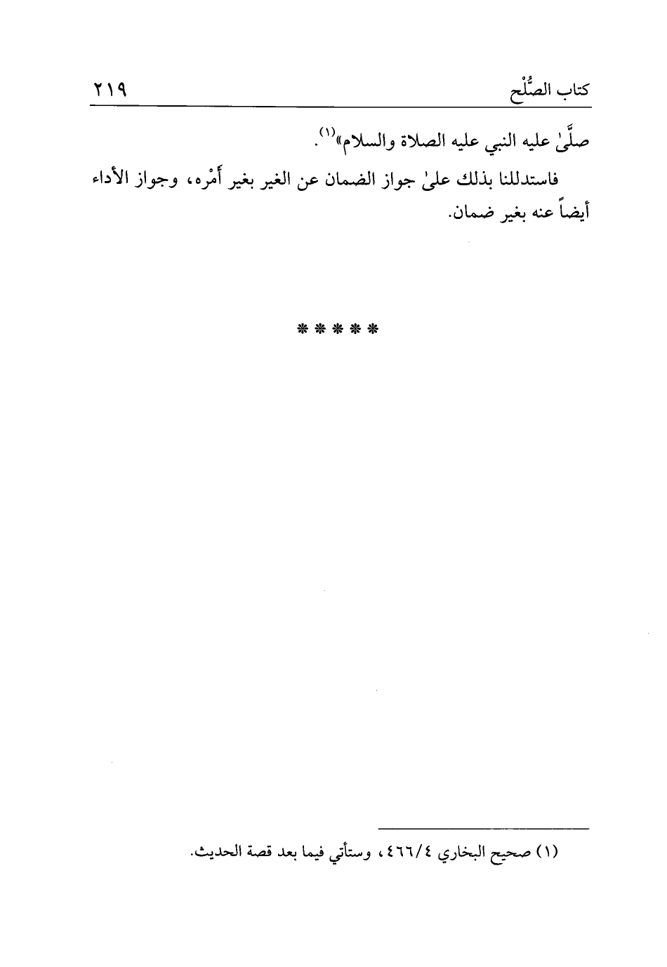 فاستدللنا بذلك على جواز الضمان عن الغير بغير أمره، وجواز الأداء أيضا عنه بغير ضمان.