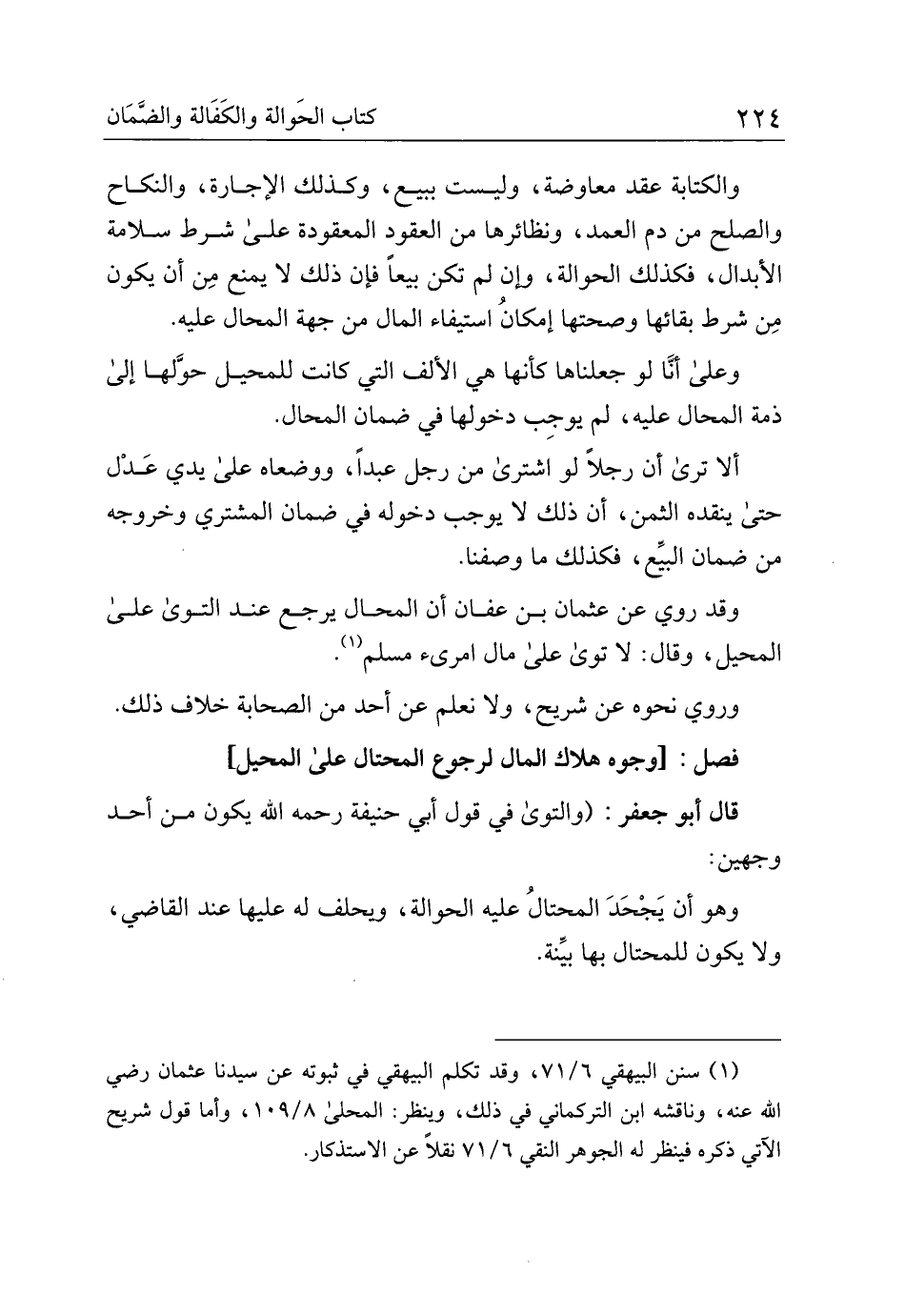 وقد روى عن عثمان بن عفان أن المحال يرجع عند التوى على المحيل، وقال: لا توى على مال امرئ مسلم.