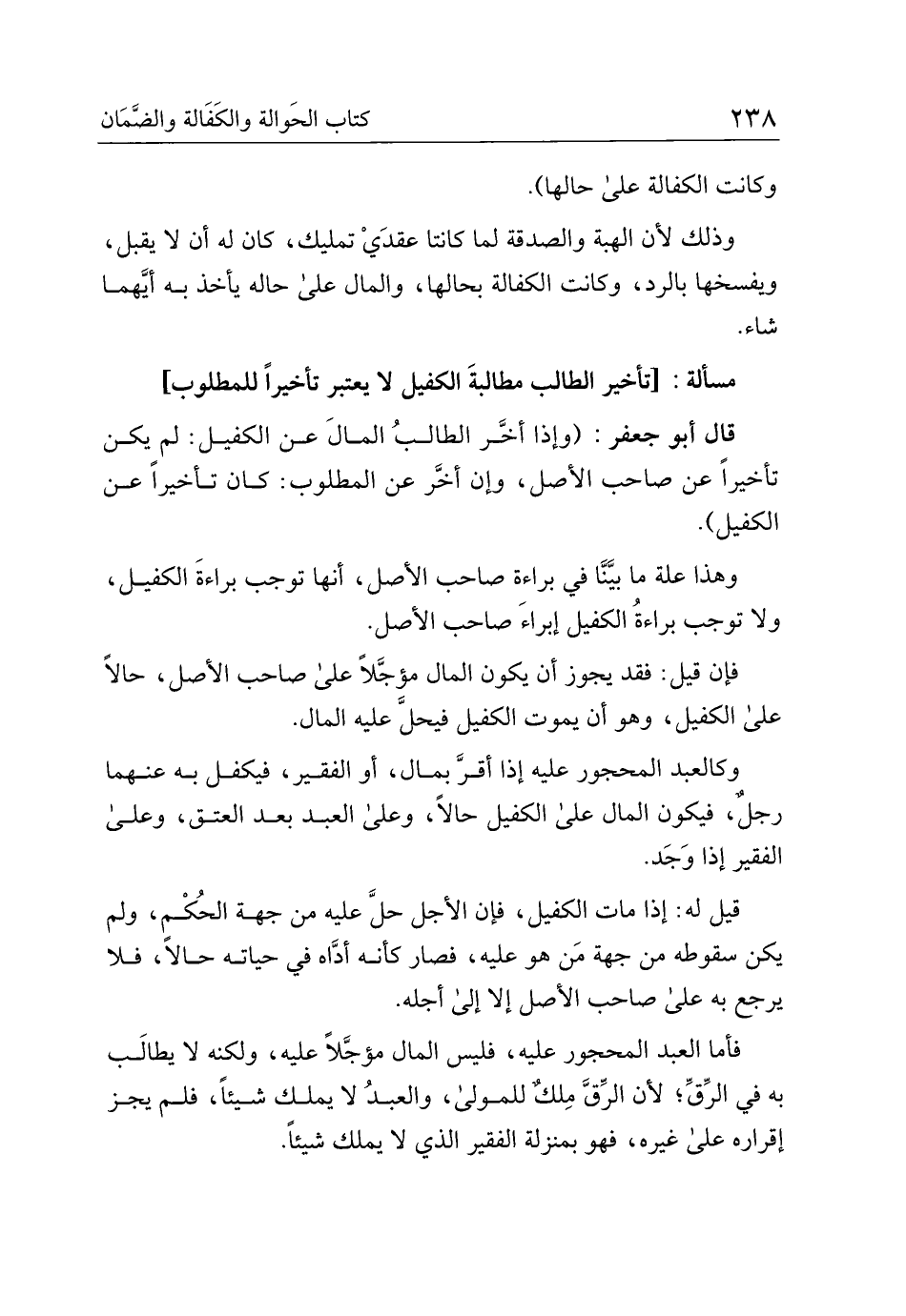 مسألة: [تأخير الطالب مطالبة الكفيل لا يعتبر تأخيرا للمطلوب]