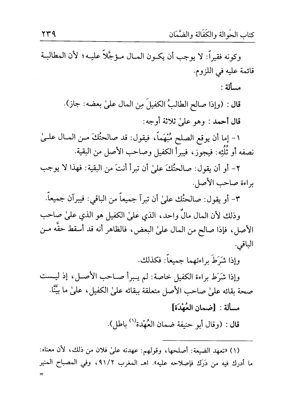 1. إما أن يوقع الصلح مبهما، فيقول: قد صالحتك من المال على نصفه أو ثلثه: فيجوز، فيبرأ الكفيل وصاحب الأصل من البقية.