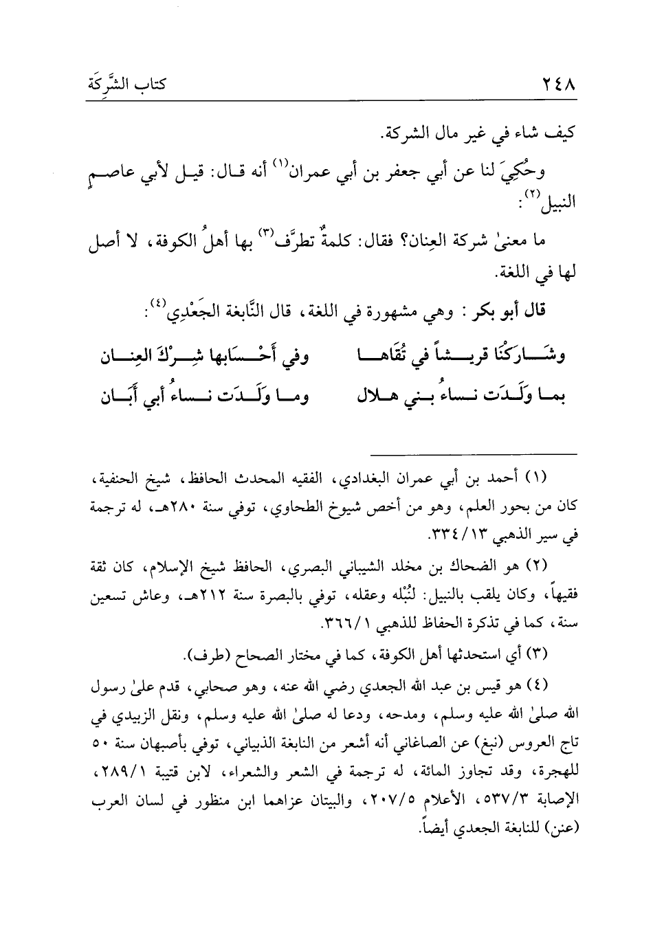 ما معنى شركة العنان؟ فقال: كلمة تطرف بها أهل الكوفة، لا أصل لها في اللغة.