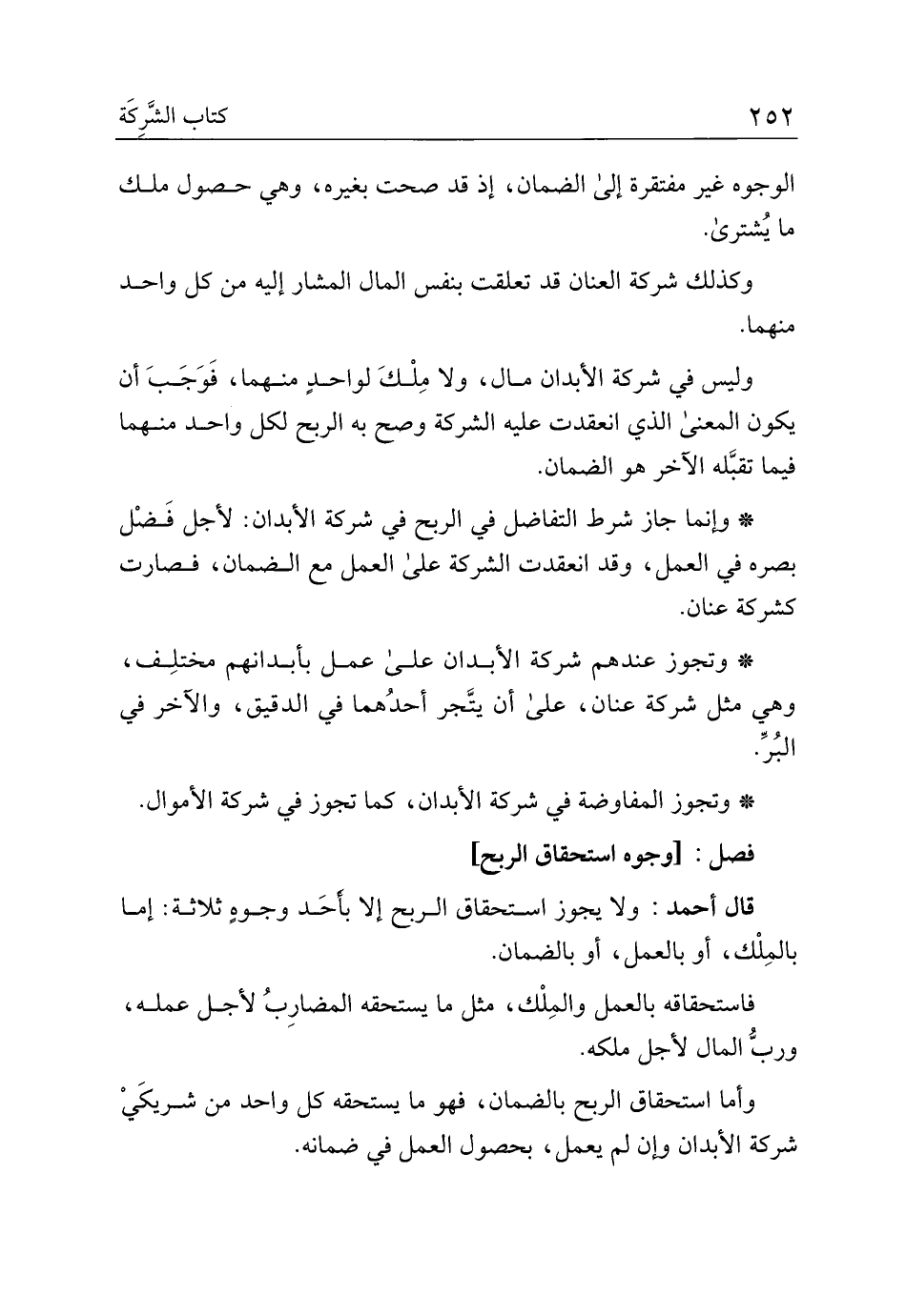 قال أحمد: ولا يجوز استحقاق الربح إلا بأحد وجوه ثلاثة: أما بالملك، أو العمل، أو بالضمان.