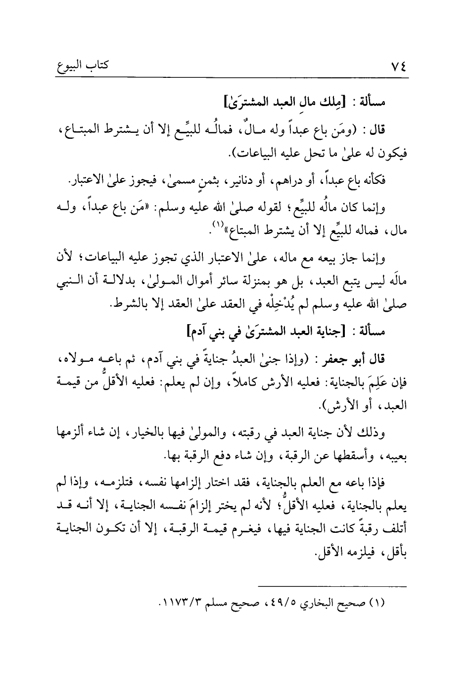 قال: (ومن باع عبدا وله مال، فماله للبيع إلا أن يشترط المبتاع، فيكون له على ما تحل عليه البياعات).