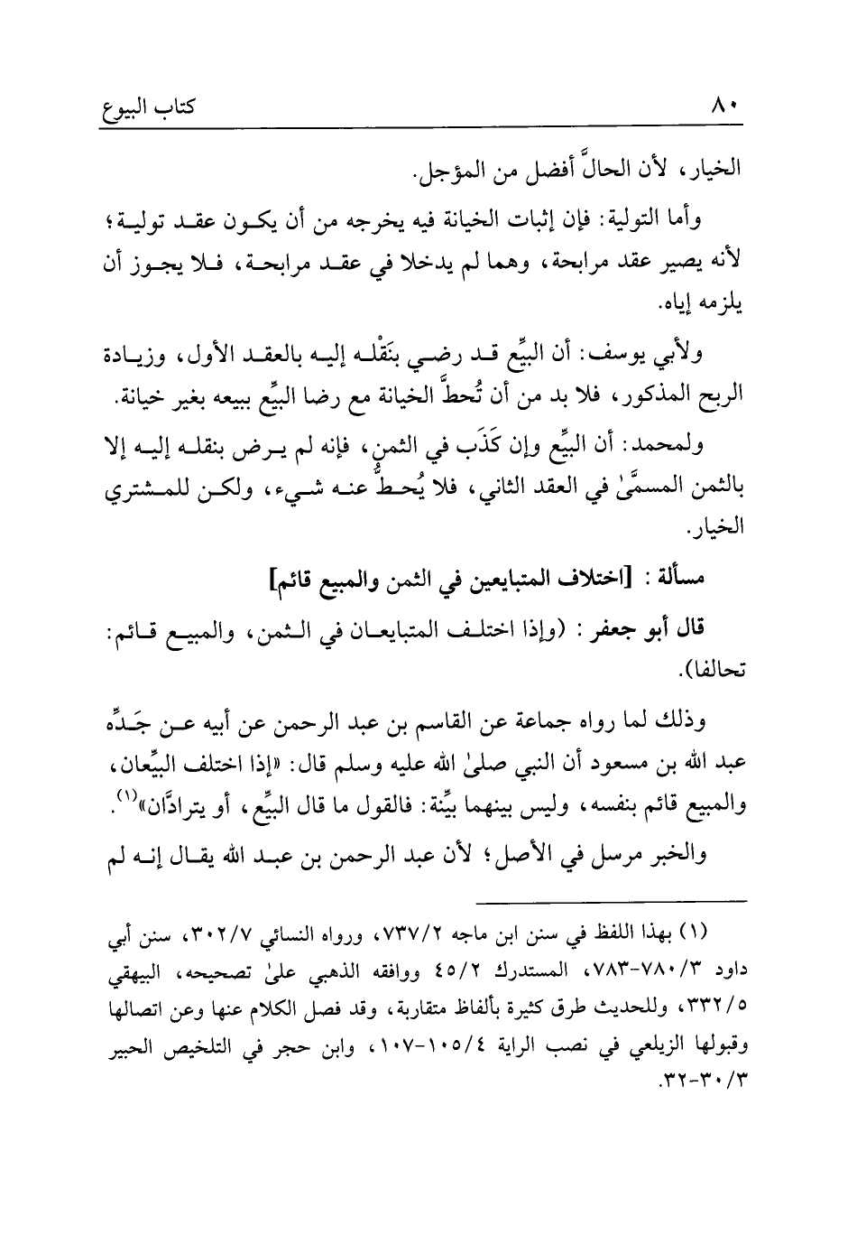 وذلك لما رواه جماعة عن القاسم بن عبد الرحمن عن أبيه عن جده عبد الله بن مسعود أن النبي صلى الله عليه وسلم قال: "إذا اختلف البيعان، والمبيع قائم بنفسه، وليس بينهما بينة: فالقول ما قال البيع، أو يترادان".