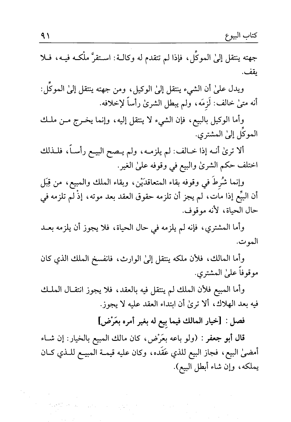جهته ينتقل إلى الموكل، فإذا لم تتقدم له وكالة: استقر ملكه فيه، فلا يقف.